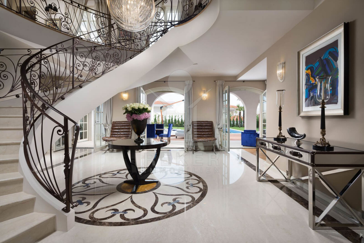Die Luxusvilla auf einem 1138 m² großen Grundstück bietet absolute Privatsphäre durch eine hohe Hecke und eine atemberaubende Aussicht auf den umliegenden Garten, der mit mediterranen Pflanzen und sorgfältig gepflegtem Rasen bepflanzt ist. Das Haus selbst erstreckt sich über 2 Etagen mit unglaublichen 478 m² und wurde 2017 gebaut. Der Hof bietet genug Platz für Ihr Fahrzeug.