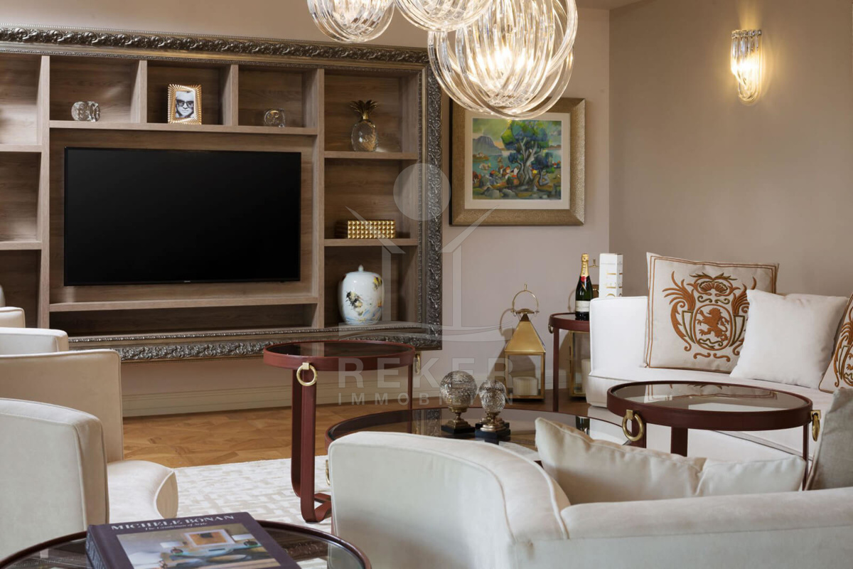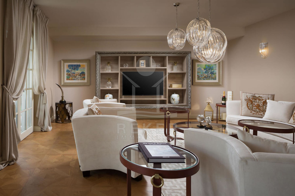 Die klimatisierte Wohnung ist luxuriös und stilvoll eingerichtet und bietet alles, was das Herz begehrt. Im Erdgeschoss erwarten Sie eine schöne Küche, ein Esszimmer und ein gemütliches Wohnzimmer mit Blick auf den Pool und den Garten sowie zwei Schlafzimmer mit Bad.