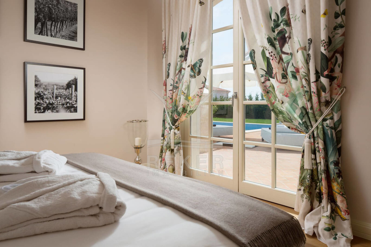 Die außergewöhnliche Luxusvilla befindet sich in einer ruhigen Lage zwischen Porec und Novigrad. Hier wohnen Sie in einer exklusiven Gegend, umgeben von anderen Luxusvillen und einer reizvollen Landschaft. Die Umgebung bietet absolute Privatsphäre und Ruhe, sodass Sie sich völlig entspannen können. Das Meer ist nur 2 km entfernt und das charmante Zentrum von Vabriga erreichen Sie in 600 Metern. Von hier aus können Sie die Schönheit und Vielfalt Istriens entdecken. Wer es sportlich mag, findet hier viele Möglichkeiten, wie z.B. Golf oder Tennis. In den charmanten Dörfern in der Umgebung finden Sie viele lokale Restaurants, in denen Sie die Köstlichkeiten der Region genießen können.