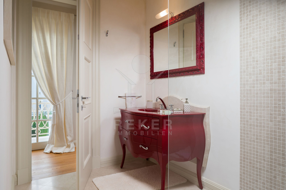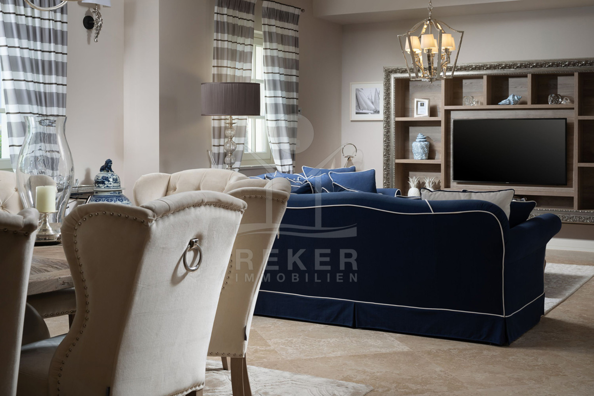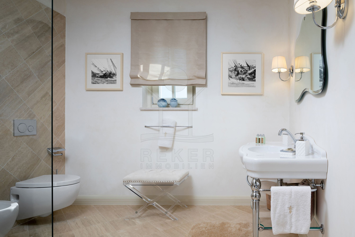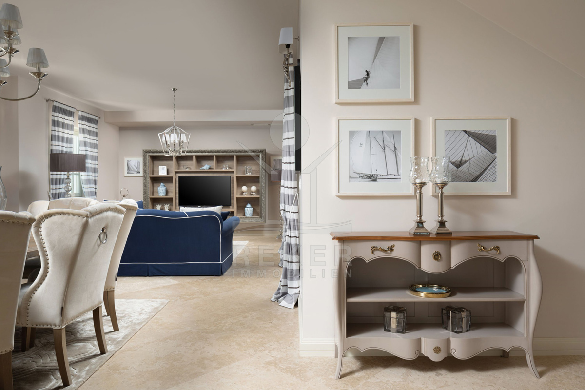 Die Villa wird vollständig mit einzigartigen Unikat-Möbelstücken verkauft, die perfekt aufeinander abgestimmt sind und eine besondere Atmosphäre schaffen. Im Erdgeschoss der Villa erwartet Sie ein offenes Raumkonzept, das eine moderne Küche, ein Esszimmer und ein Wohnzimmer miteinander verbindet. Eine überdachte Außenterrasse lädt zum Entspannen ein. Hier befinden sich auch ein Schlafzimmer mit eigenem Bad und ein Abstellraum.