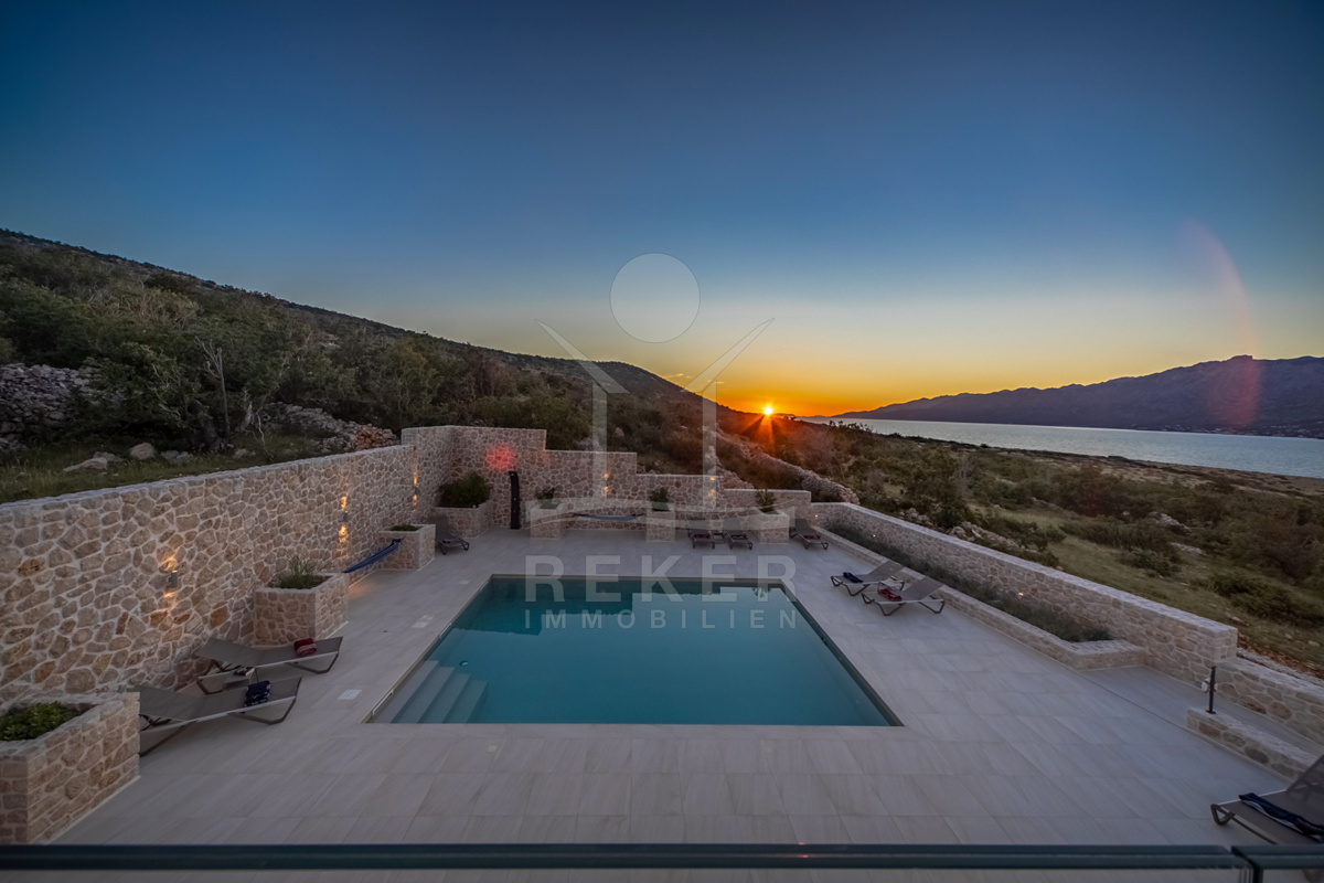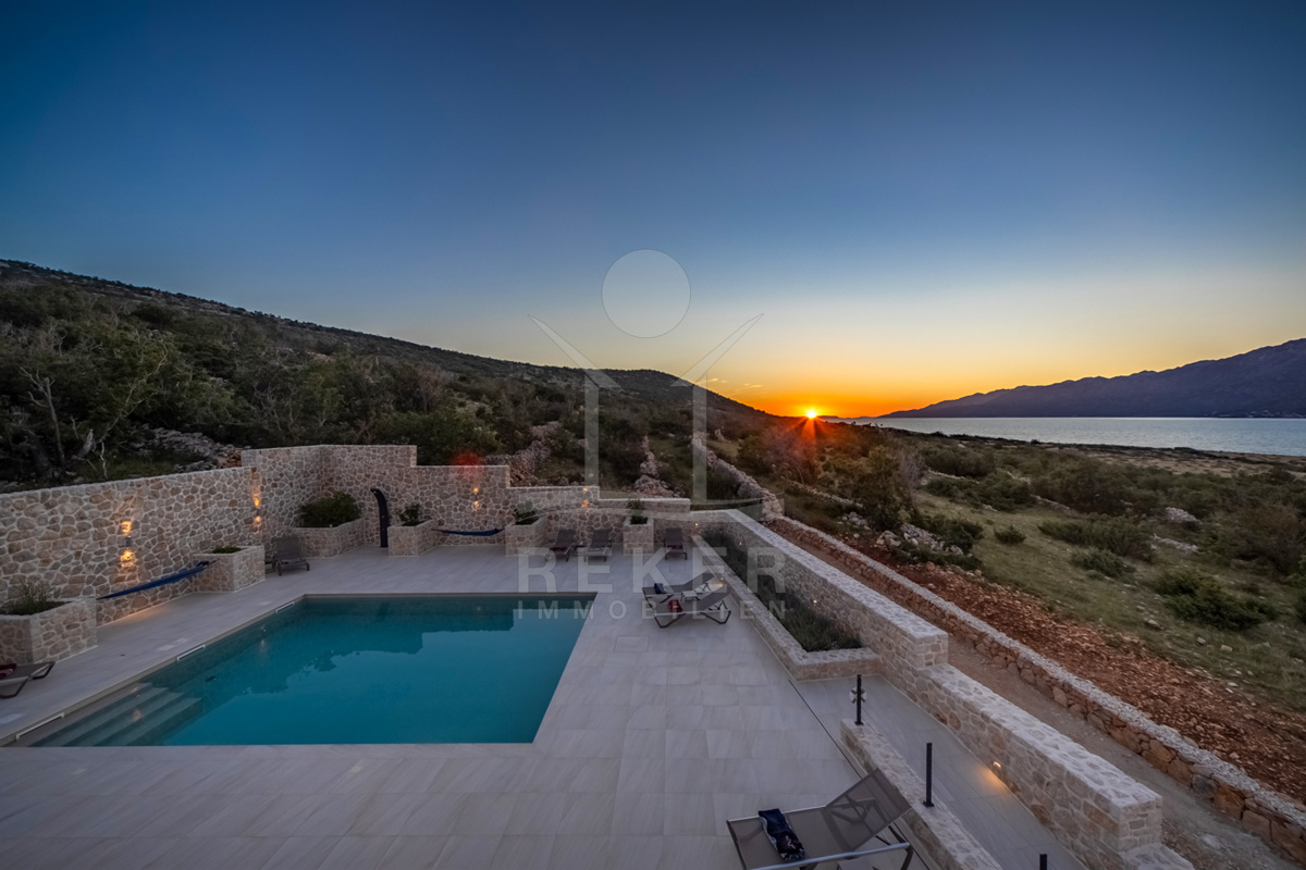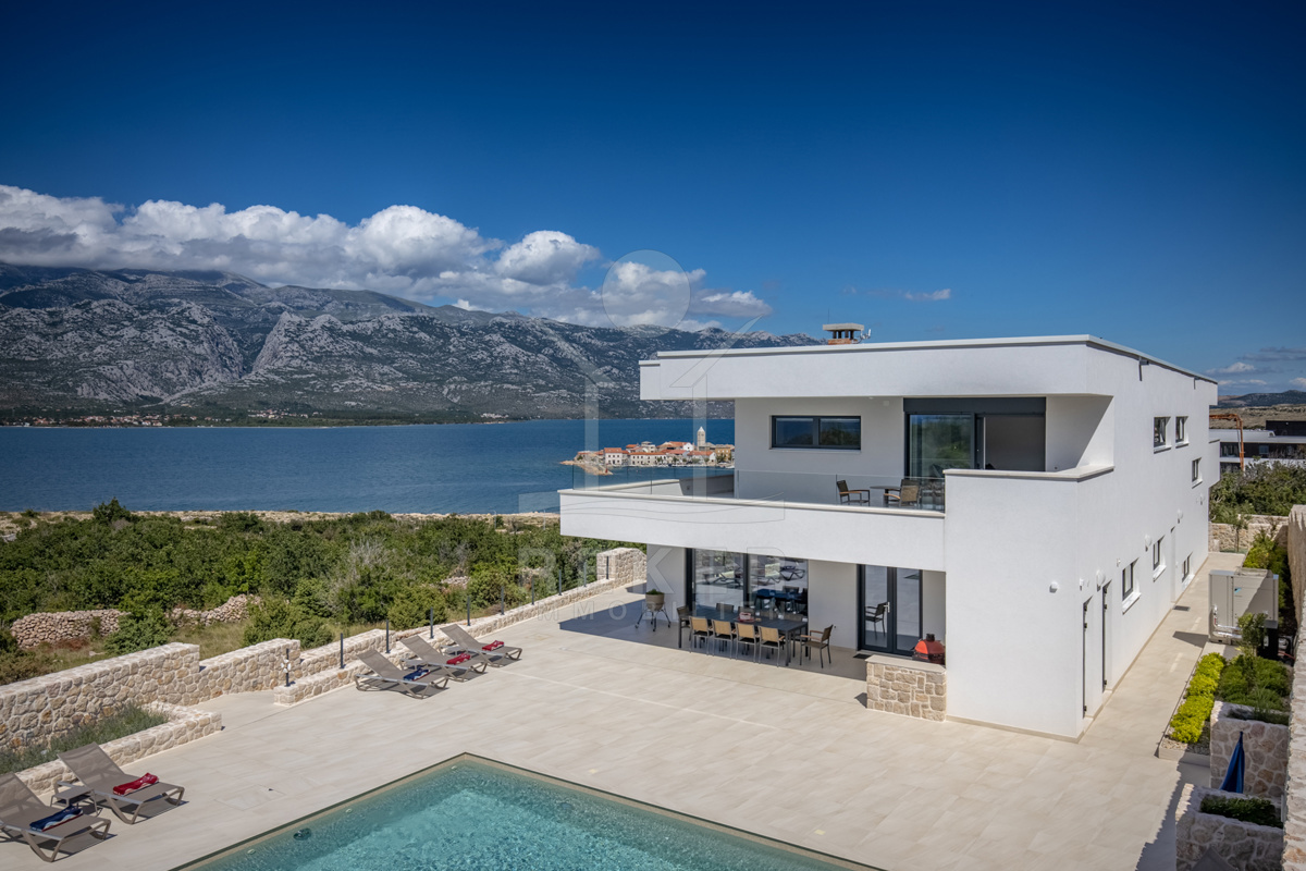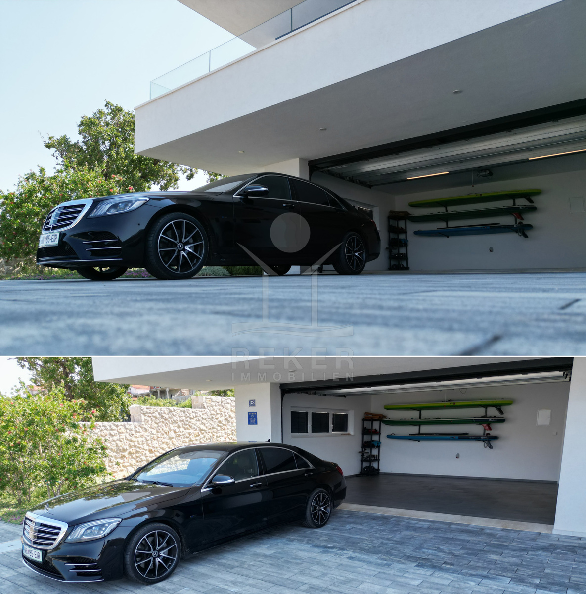 Das Grundstück umfasst 1.060 Quadratmeter und liegt am Ende einer Sackgasse. Durch die Randlage genießen Sie absolute Privatsphäre. Vor der Villa bleibt das Gelände unbebaut, dadurch bleibt der freie Blick auf das Meer, die Altstadt von Vinjerac und den Velebit-Nationalpark für immer erhalten. Eine Natursteinmauer umrahmt das Anwesen, während ein Hügel im Rücken zusätzlichen Schutz gibt. Der mediterrane Garten duftet nach Lavendel und Rosmarin, dazwischen wachsen Oliven, Feigen sowie Orangen-, Zitronen- und Kumquatbäume. Dank automatischer Bewässerung bleibt der Pflegeaufwand gering.