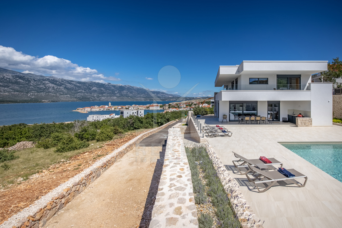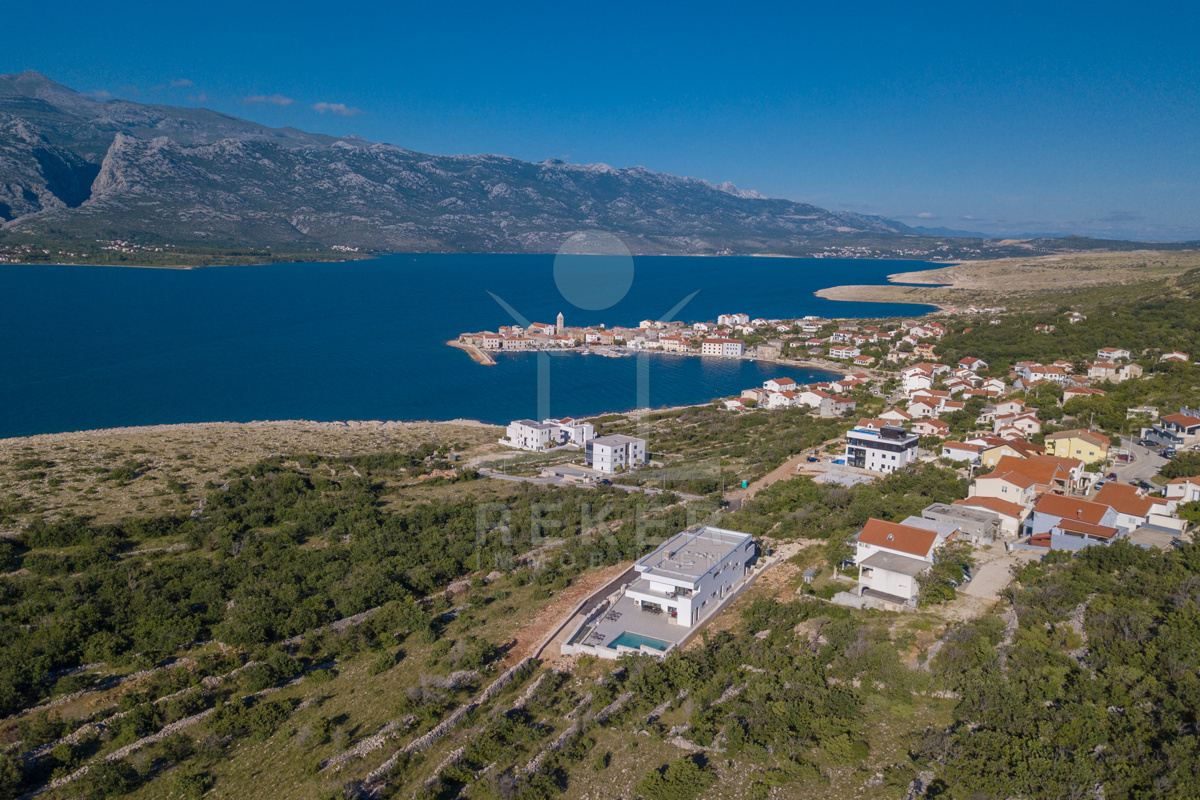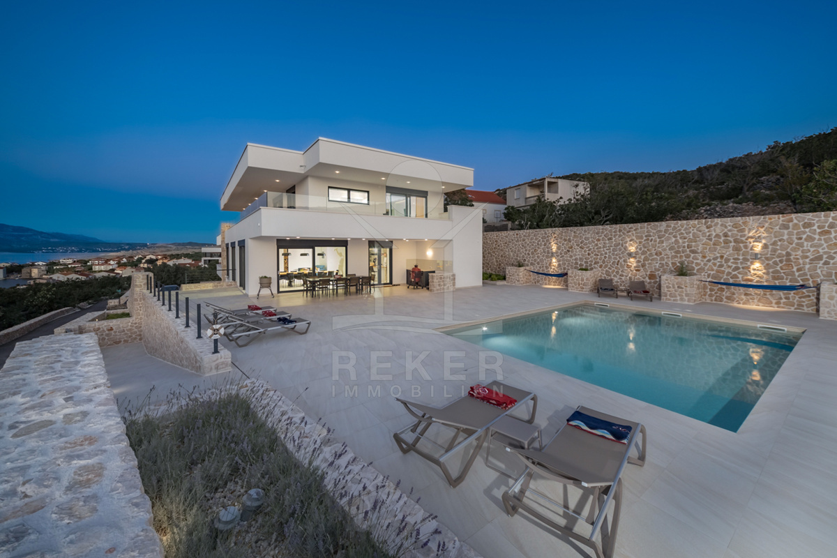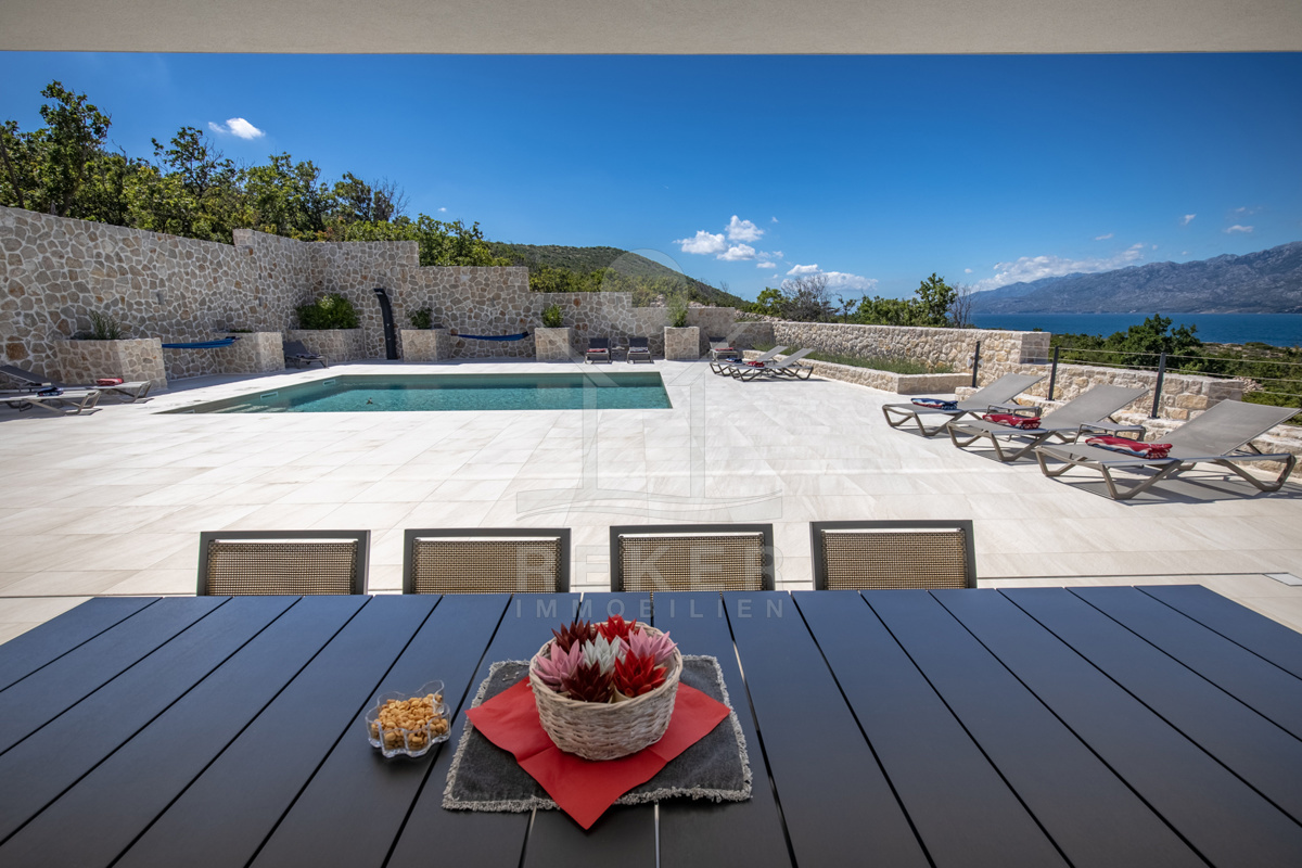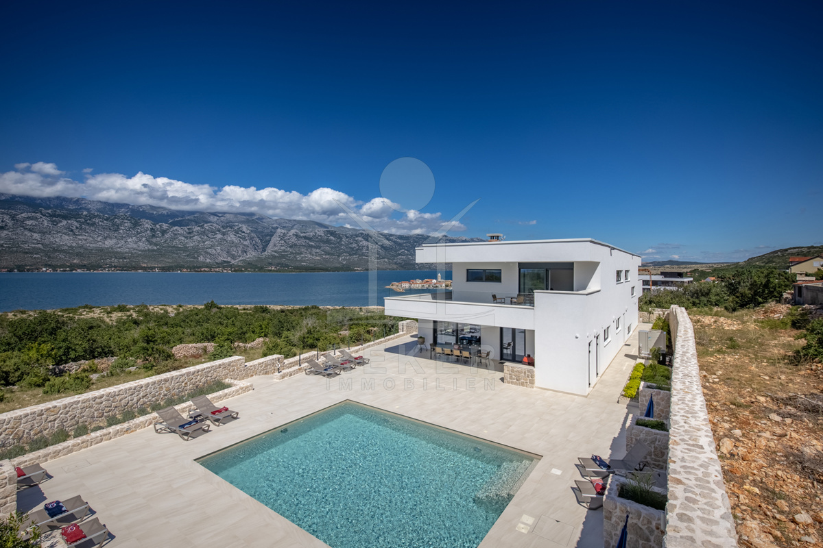 Das Grundstück umfasst 1.060 Quadratmeter und liegt am Ende einer Sackgasse. Durch die Randlage genießen Sie absolute Privatsphäre. Vor der Villa bleibt das Gelände unbebaut, dadurch bleibt der freie Blick auf das Meer, die Altstadt von Vinjerac und den Velebit-Nationalpark für immer erhalten. Eine Natursteinmauer umrahmt das Anwesen, während ein Hügel im Rücken zusätzlichen Schutz gibt. Der mediterrane Garten duftet nach Lavendel und Rosmarin, dazwischen wachsen Oliven, Feigen sowie Orangen-, Zitronen- und Kumquatbäume. Dank automatischer Bewässerung bleibt der Pflegeaufwand gering.