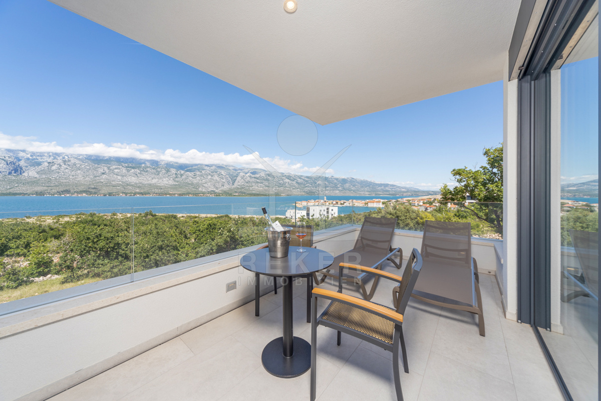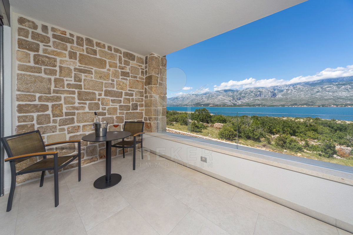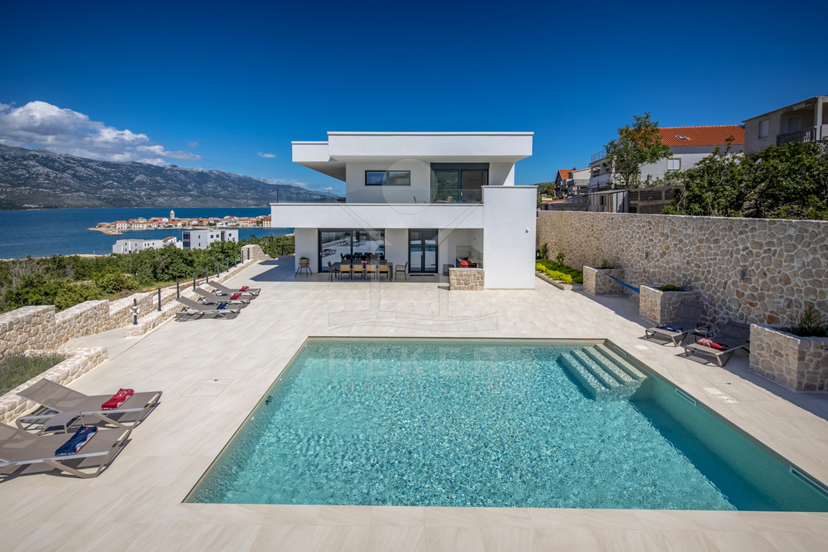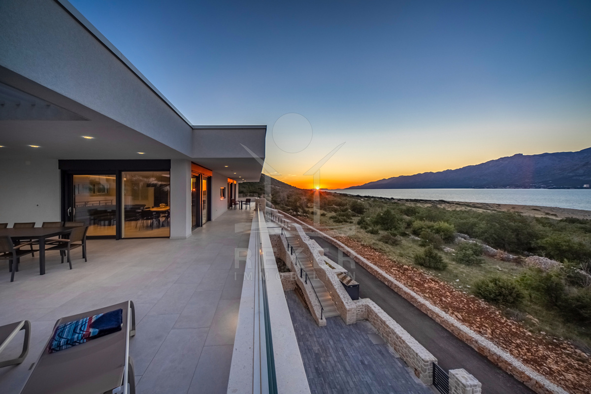 Das Grundstück umfasst 1.060 Quadratmeter und liegt am Ende einer Sackgasse. Durch die Randlage genießen Sie absolute Privatsphäre. Vor der Villa bleibt das Gelände unbebaut, dadurch bleibt der freie Blick auf das Meer, die Altstadt von Vinjerac und den Velebit-Nationalpark für immer erhalten. Eine Natursteinmauer umrahmt das Anwesen, während ein Hügel im Rücken zusätzlichen Schutz gibt. Der mediterrane Garten duftet nach Lavendel und Rosmarin, dazwischen wachsen Oliven, Feigen sowie Orangen-, Zitronen- und Kumquatbäume. Dank automatischer Bewässerung bleibt der Pflegeaufwand gering.