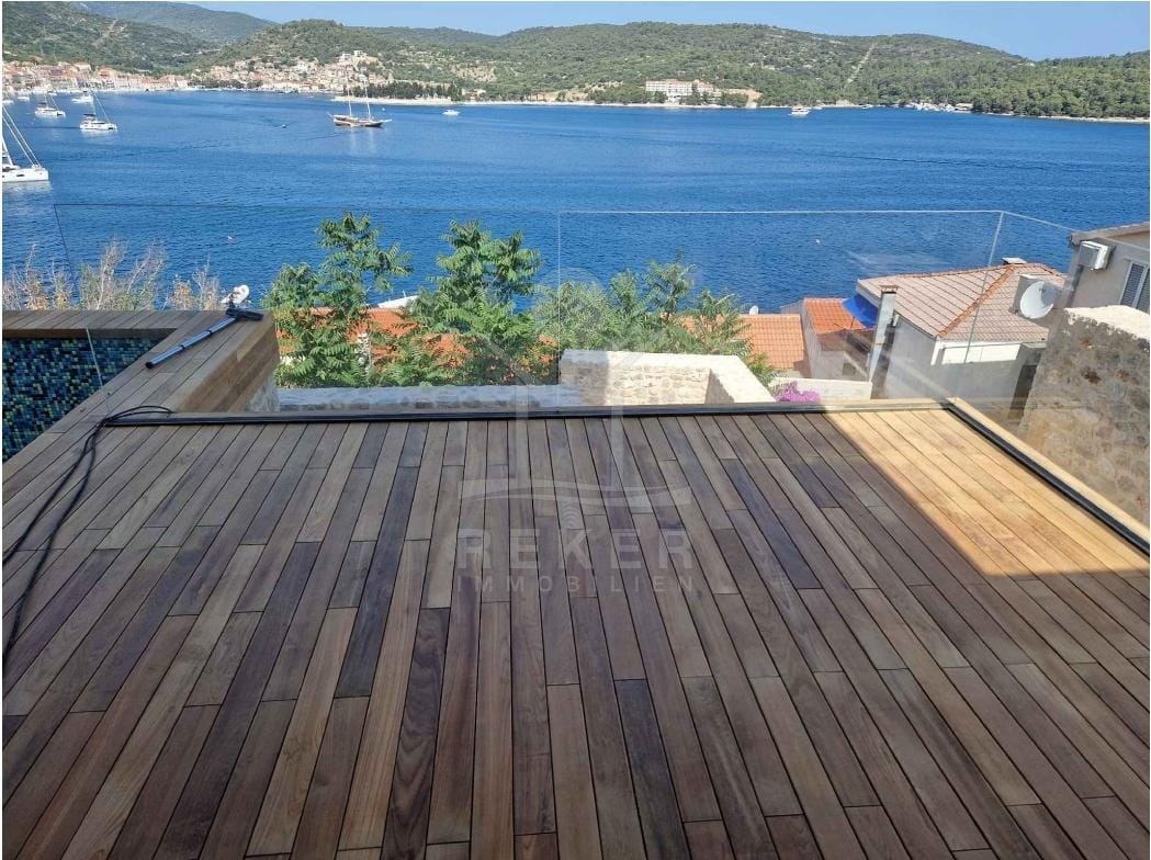 Das Anwesen befindet sich in einer äußerst attraktiven Lage auf der Insel Vis und bietet einen unverbauten Blick auf das Meer und die gesamte Bucht von Vis. Nur 50 Meter vom Meer entfernt, können Sie das kristallklare Wasser der Adria genießen und in der Sonne entspannen. Alle notwendigen Einrichtungen befinden sich in unmittelbarer Nähe, sodass Sie alles bequem zu Fuß erreichen können. Ein perfekter Ort, um die einzigartige Atmosphäre dieses mediterranen Juwels zu erleben.