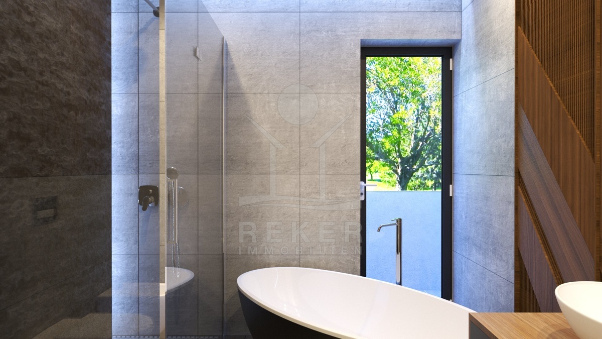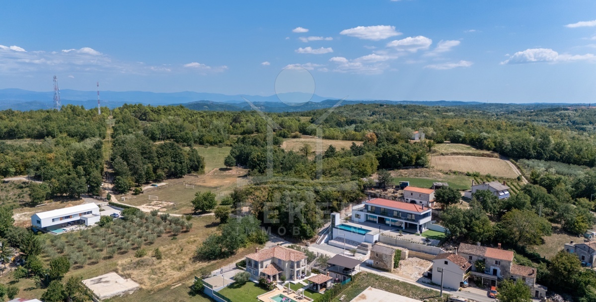 Vižinada, mitten in Istrien. Hier entsteht eine Neubau-Luxusvilla, die Eleganz und Komfort vereint. Eingebettet in die grüne Landschaft und nur rund 11 Kilometer vom Meer entfernt, genießen Sie Ruhe und Privatsphäre. Gleichzeitig erreichen Sie Poreč und Umag schnell, Städte voller Geschichte, Restaurants und Freizeitangebote. Auch der Ortskern von Vižinada mit Einkaufsmöglichkeiten liegt nah. Für zusätzlichen Komfort sorgen vier Stellplätze, einer davon mit Ladestation für E-Autos.