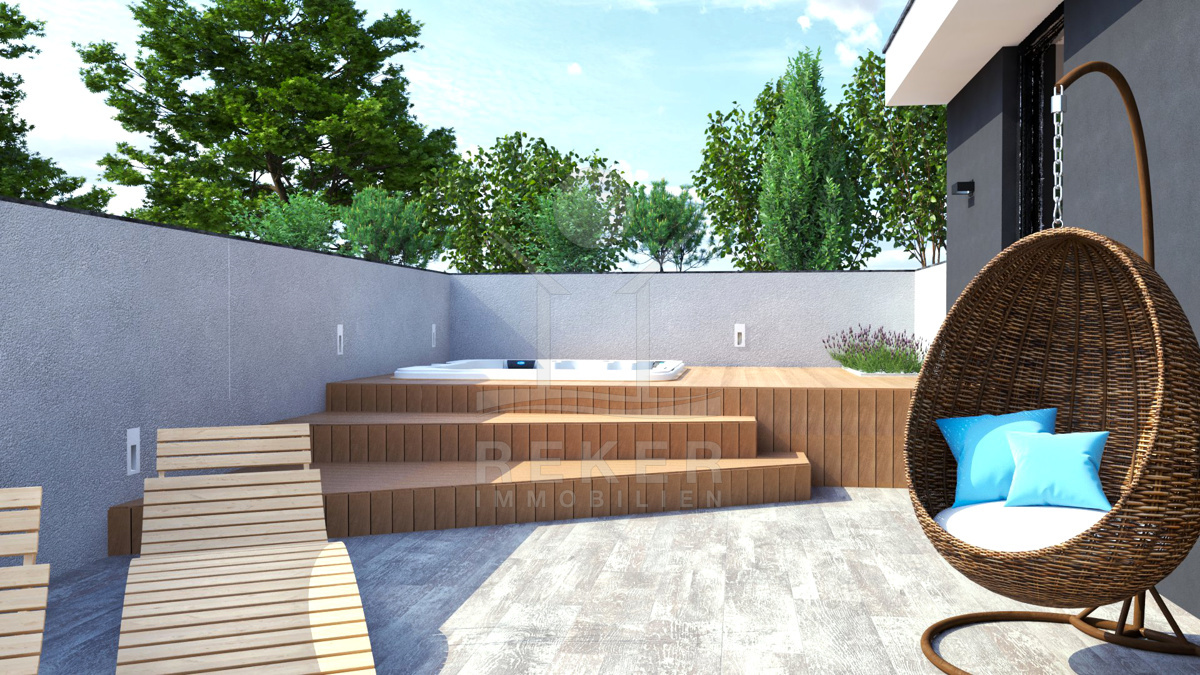 Auch die Ausstattung überzeugt. Hochwertige Bauqualität, modernste Technik mit Aufzug, Wärmepumpe, Fußbodenheizung, Klimaanlage sowie Alarm- und Videoüberwachung. So verbinden sich Komfort, Sicherheit und Effizienz. Fertigstellung ist im Herbst 2025. Bereit für Ihren Einzug in ein Zuhause voller Luxus.