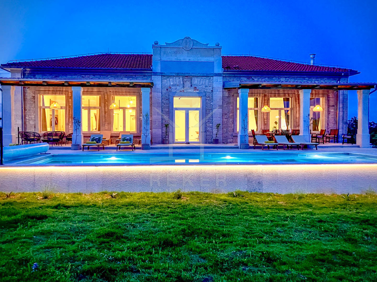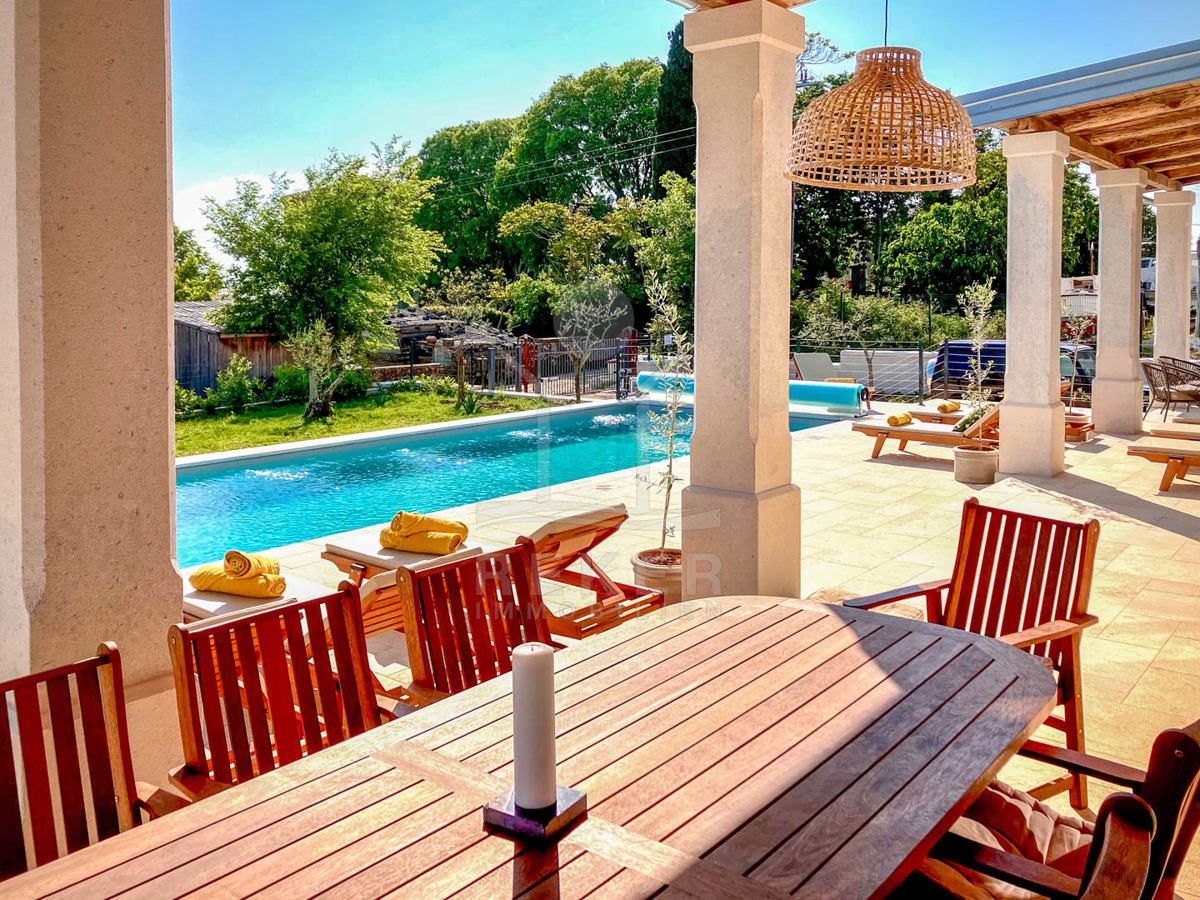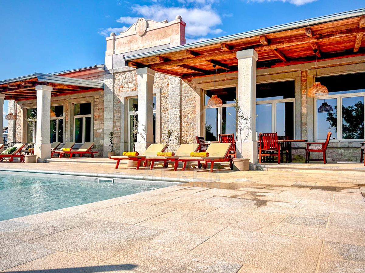 Die Villa verfügt über eine atemberaubende Terrasse, die mit einem großzügigen Swimmingpool, zwei überdachten Terrassen und bequemen Sonnenliegen ausgestattet ist. Ein Steingrill und eine Außenküche stehen zur Verfügung, um Ihre Gäste zu bewirten und unvergessliche gastronomische Erlebnisse im Freien zu schaffen. Ob Sie die Sonne genießen oder sich am Pool entspannen möchten, diese exklusive Villa bietet alles, um ein luxuriöses Leben im Freien zu ermöglichen.