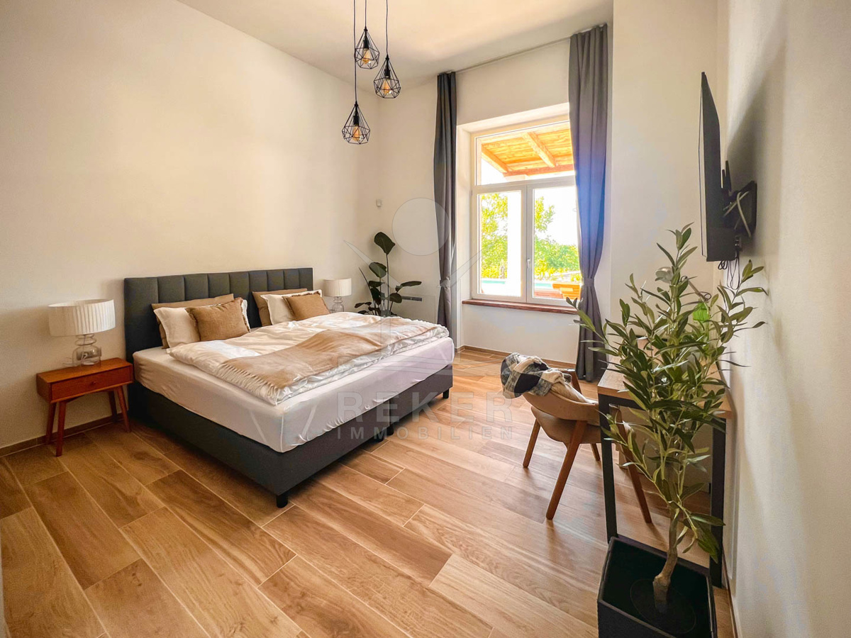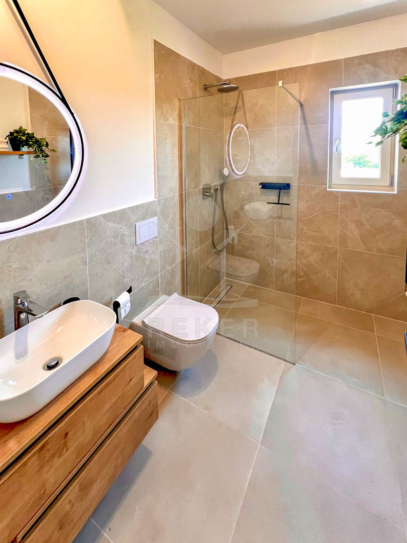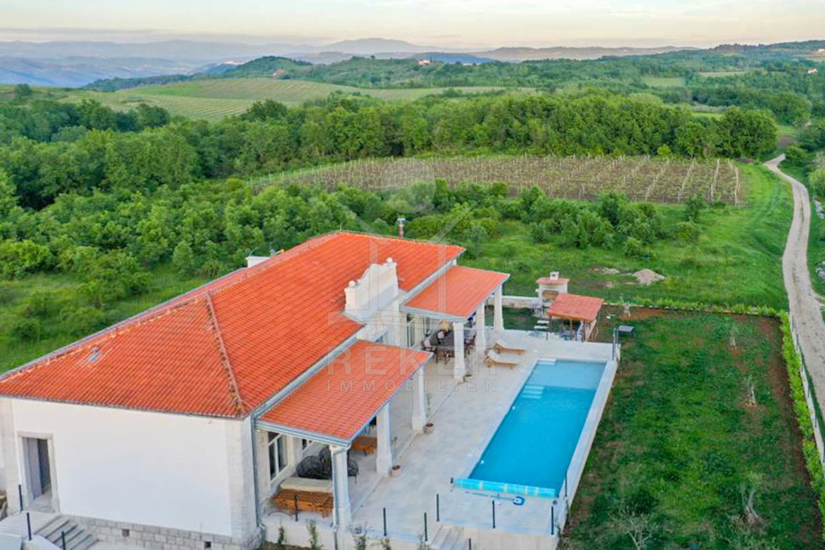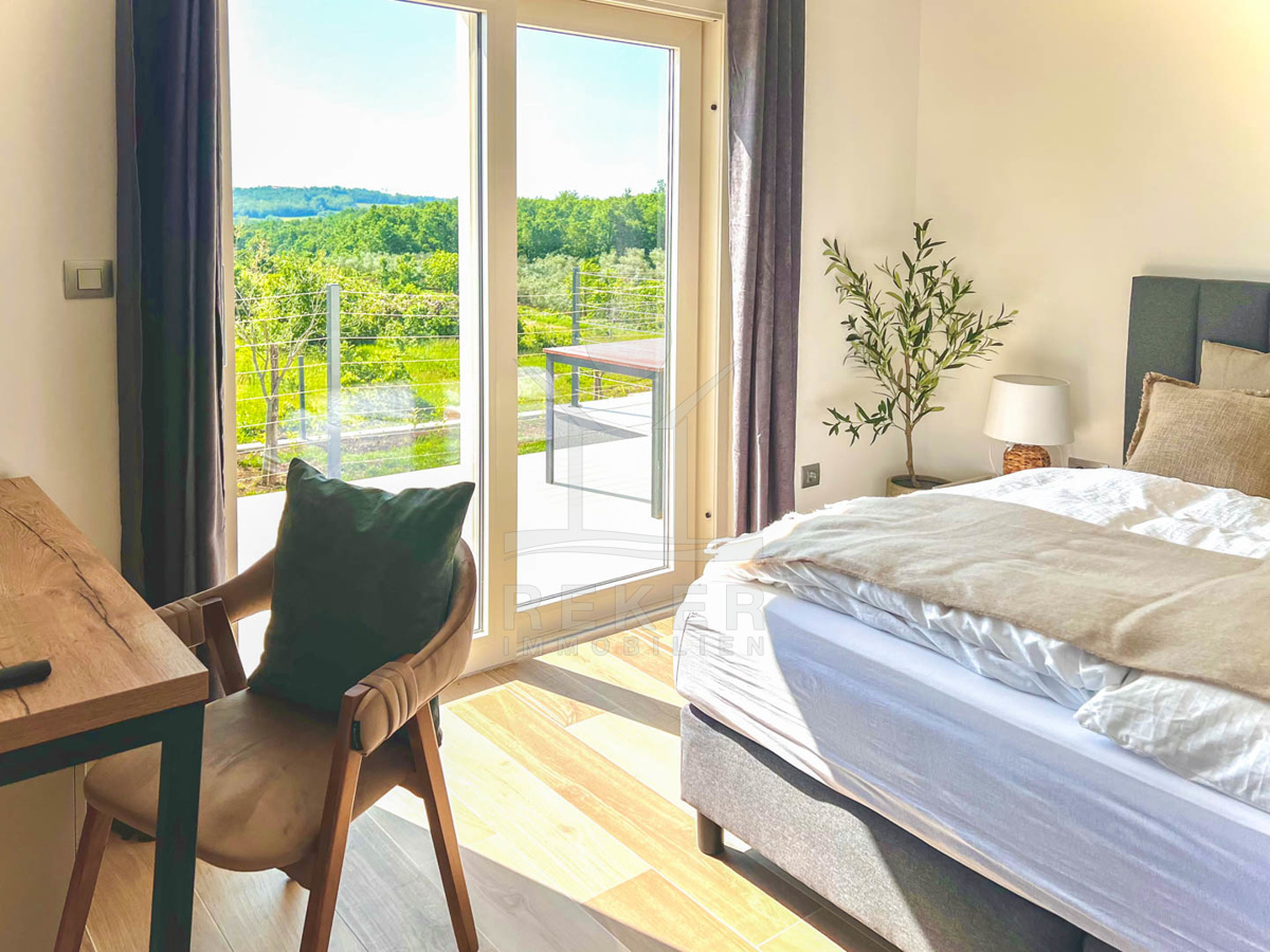 Die elegante Villa befindet sich in einer grünen und idyllischen Umgebung, nur eine kurze Fahrt von Vižinada entfernt. Umgeben von sattgrünen Wiesen und Wäldern, können Sie hier die Ruhe und Natur genießen. Trotz der Abgeschiedenheit liegt das Meer nur 14 km entfernt, sodass Sie auch die traumhaften Strände der Region schnell erreichen können. Das Zentrum von Poreč, bekannt für seine historische Altstadt und lebendige Atmosphäre, ist ebenfalls nur 20 km entfernt. Hier finden Sie zahlreiche Einkaufsmöglichkeiten und kulturelle Attraktionen. Diese einzigartige Lage bietet somit eine perfekte Mischung aus Ruhe und Nähe zu den Annehmlichkeiten der nahegelegenen Städte.