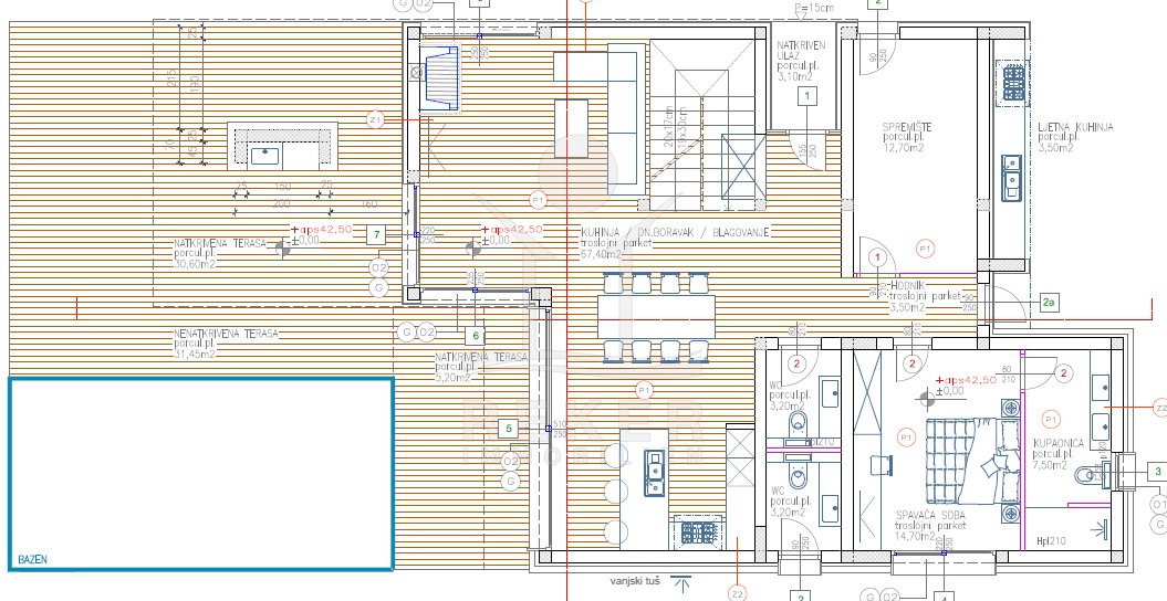 Das Anwesen befindet sich auf einem großzügigen Grundstück mit leichter Hanglage von 421 m² und bietet 3 Etagen puren Luxus auf insgesamt 285 m² Wohnfläche. Die hochwertige Ausstattung umfasst großzügige Schiebefenster mit 3-fach-Verglasung, luxuriöse Böden aus Keramik und Parkett sowie eine innovative Klimatisierung durch eine Multi Split-Anlage. Die Wärmepumpe sorgt für effiziente Heizung und Warmwasserbereitung, während die elektrische Fußbodenheizung im Badezimmer zusätzlichen Komfort bietet. Die Implementierung eines Smart-Home-Systems ist für die Automatisierung geplant und die Vorbereitung für Photovoltaikzellen zeigt ein Engagement für erneuerbare Energien. Die voraussichtliche Fertigstellung ist für Sommer 2025 geplant. Ein Parkplatz ist vorgesehen für 2 Stellplätze.