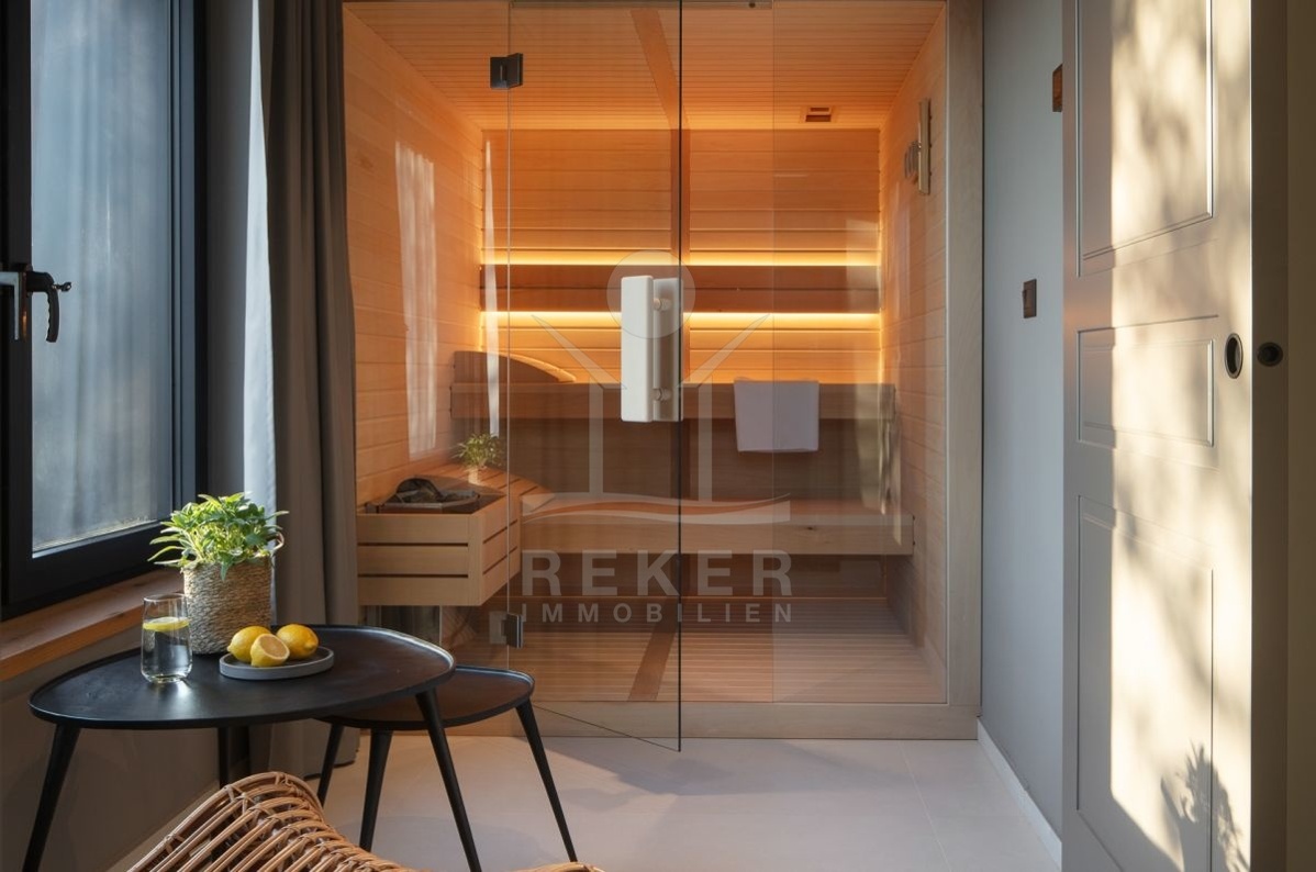 Die großzügige Terrasse der Villa lädt dazu ein, im Freien schöne Stunden zu verbringen. Der beeindruckende beheizte 47 m² Pool mit einem herrlichen Wasserfall lädt zu erfrischenden Schwimmrunden ein, während die Sonnenliegen für Entspannung und Sonnenbaden bereitstehen. Eine Außenküche mit Gasgrill und Kühlschrank sorgt dafür, dass kulinarische Genüsse im Freien zelebriert werden können. Ein gemütlicher Platz mit Feuerstelle bietet die ideale Umgebung, um gemeinsam mit anderen zu entspannen oder einfach nur die friedliche Atmosphäre zu genießen.