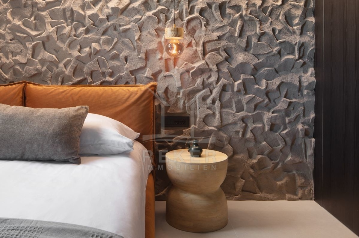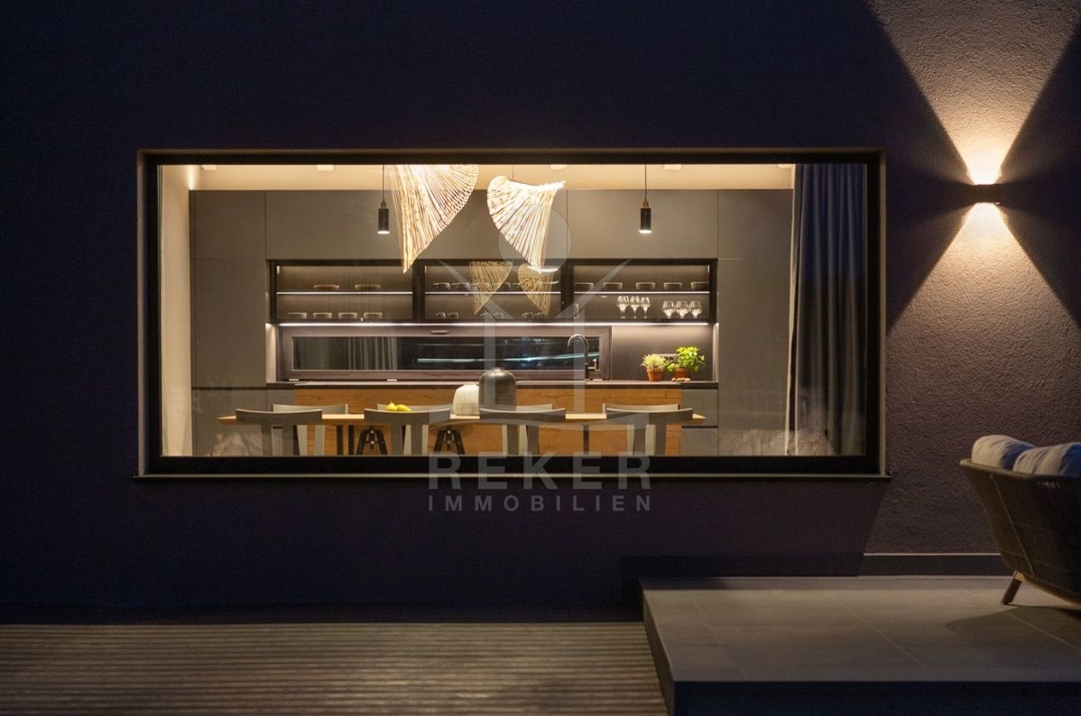 Die Villa wird vollständig möbliert verkauft und bietet im Erdgeschoss einen offenen Grundriss mit einem wunderschönen Ambiente im Wohn-, Ess- und Küchenbereich. Die geschmackvolle Einrichtung und die gut gewählten Farben schaffen eine einladende Atmosphäre. Ein Schlafzimmer mit eigenem Bad sowie ein zusätzliches WC ergänzen das Erdgeschoss, das zudem Zugang zu einer schönen Terrasse bietet.