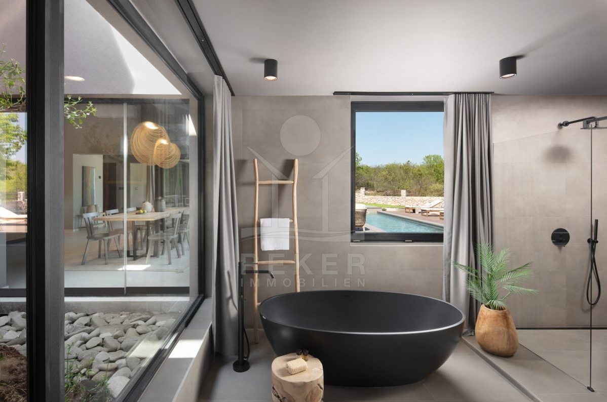 EXKLUSIVE NEUBAU LUXUSVILLA MIT BEHEIZTEM POOL & DESIGNERMÖBELN AUF KRK