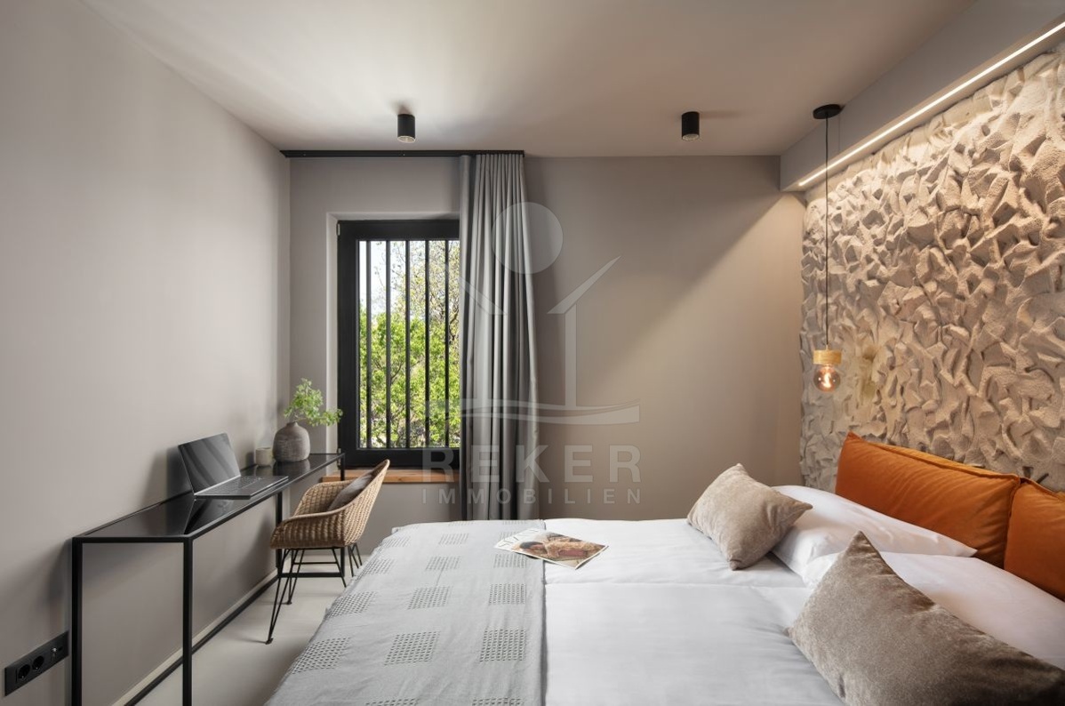 Das Anwesen umfasst ein Grundstück von 1.198 m², das von einer traditionellen Steinmauer umgeben ist und absolute Privatsphäre garantiert. Der wunderschön gestaltete Garten beeindruckt mit einer grünen Rasenfläche und einer äußerst gepflegten Anlage. Das zweistöckige, 220 m² große Gebäude ist ein Neubau aus dem Jahr 2024 und zeichnet sich durch hochwertige Konstruktion, exklusive moderne Dekoration und maßgeschneiderte Designermöbel aus. Es verfügt über Klimaanlage, Fußbodenheizung, Wärmepumpen und hochwertige Tischlerei. Mit vier Parkplätzen ist für ausreichend Stellfläche gesorgt, um den Komfort dieses luxuriösen Anwesens perfekt abzurunden.