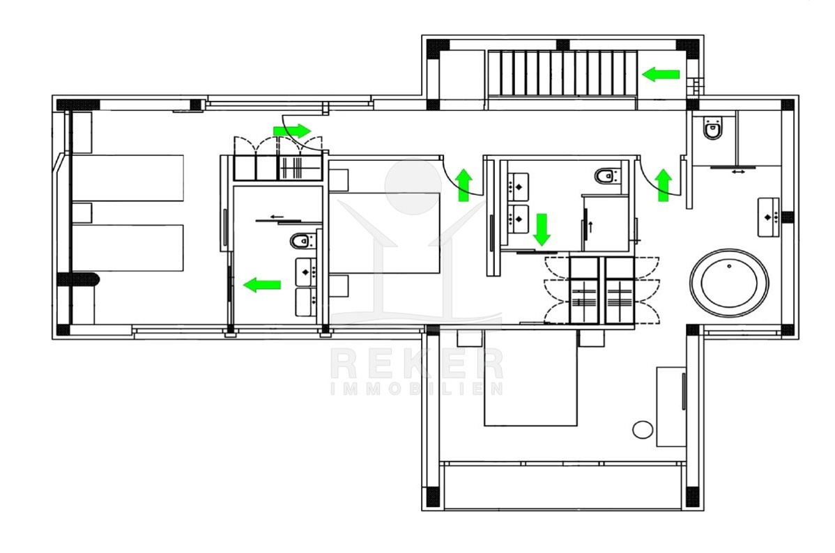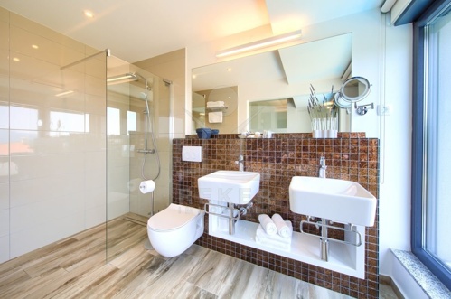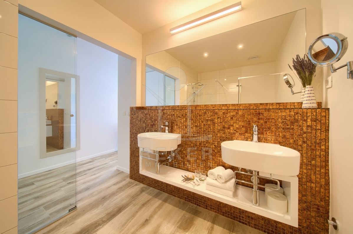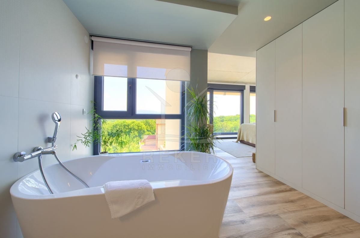 Exklusiv und modern, das gilt nicht nur für die gesamte Villa, sondern auch für die drei eleganten und großzügigen Bäder im ersten Stock.
