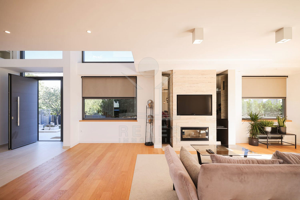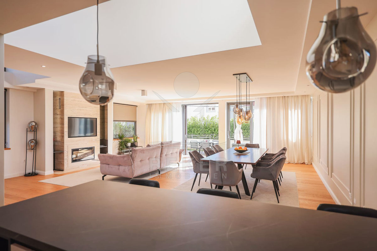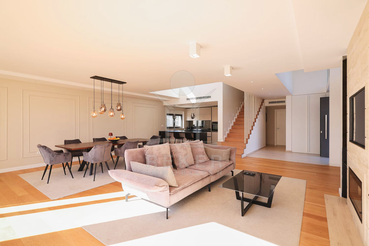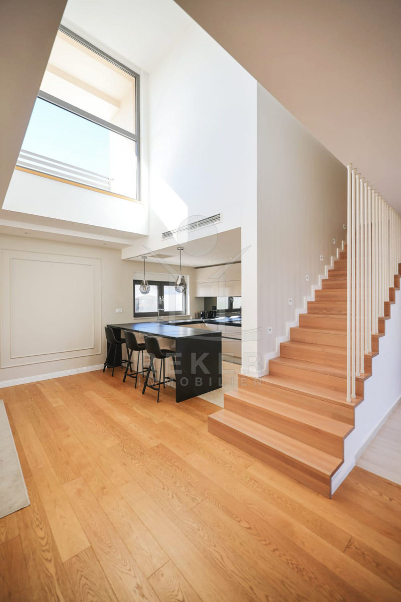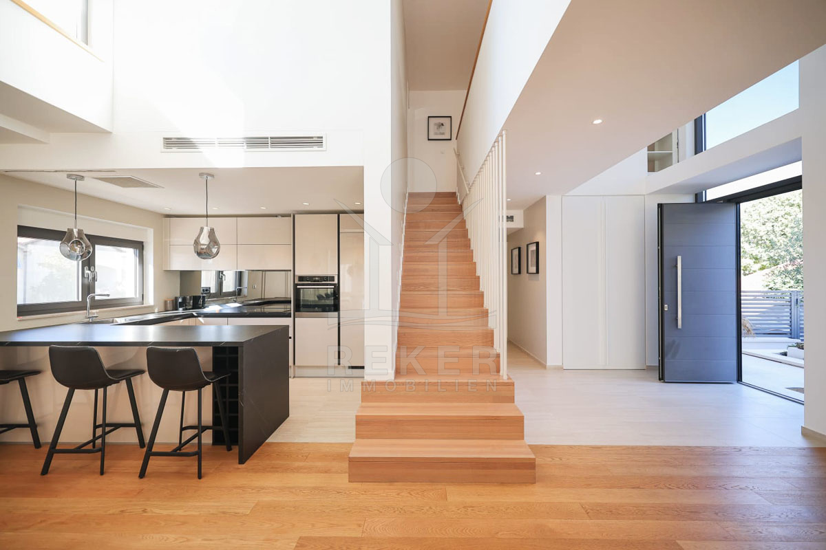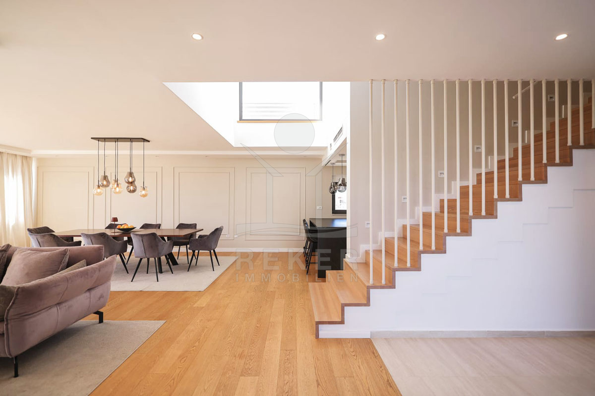 Das Anwesen erstreckt sich über 4 Etagen und bietet eine großzügige Wohnfläche von 433 m² auf einem Grundstück von 438 m². Das Haus wurde 2019 fertiggestellt und zeichnet sich durch die Verwendung ausschließlich hochwertigster Materialien namhafter Hersteller aus. Es ist voll klimatisiert und mit Wärmepumpen für die Beheizung ausgestattet, was höchsten Komfort gewährleistet.