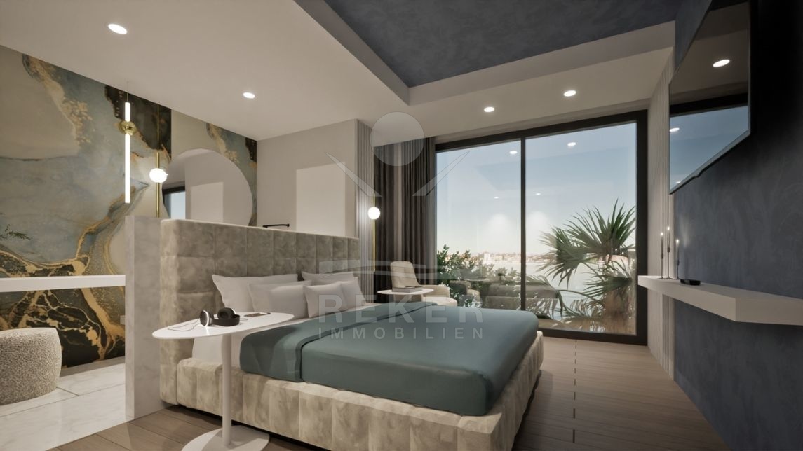 Diese atemberaubende Luxusvilla in erster Meereslinie liegt in einer der exklusivsten Wohngegenden von Zaton. Sie werden in einer Oase der Ruhe wohnen und von der grünen Umgebung mit ihren Wäldern und weiteren Villen umgeben sein. Sie können das kristallklare Meer direkt vor Ihrer Haustür genießen oder auf einem der vielen attraktiven Buchten in der Nähe Sonne tanken. Wenn Sie das bunte Treiben der Stadt Zadar erleben möchten, dann erreichen Sie diese in nur 13 km Entfernung. Ebenso ist das charmante Zentrum von Zaton bequem zu Fuß erreichbar. Hier finden Sie zahlreiche Restaurants und eine freundliche Atmosphäre. Lassen Sie sich von diesem einzigartigen Ort verzaubern und erleben Sie das mediterrane Leben in vollen Zügen!