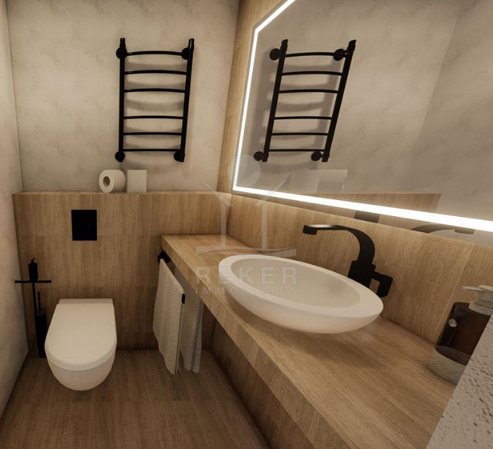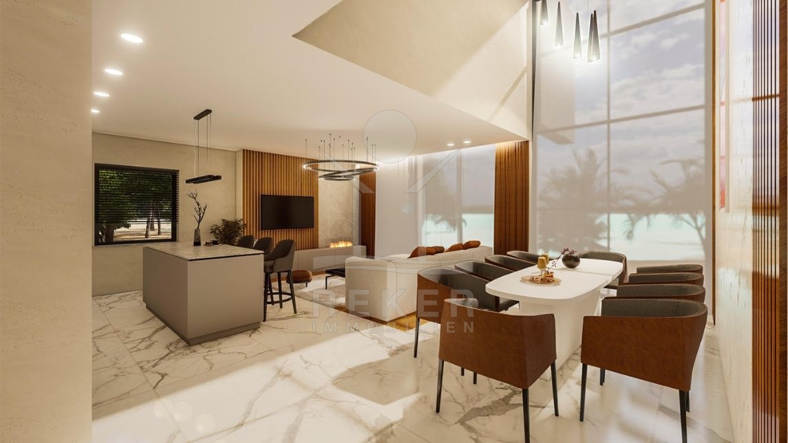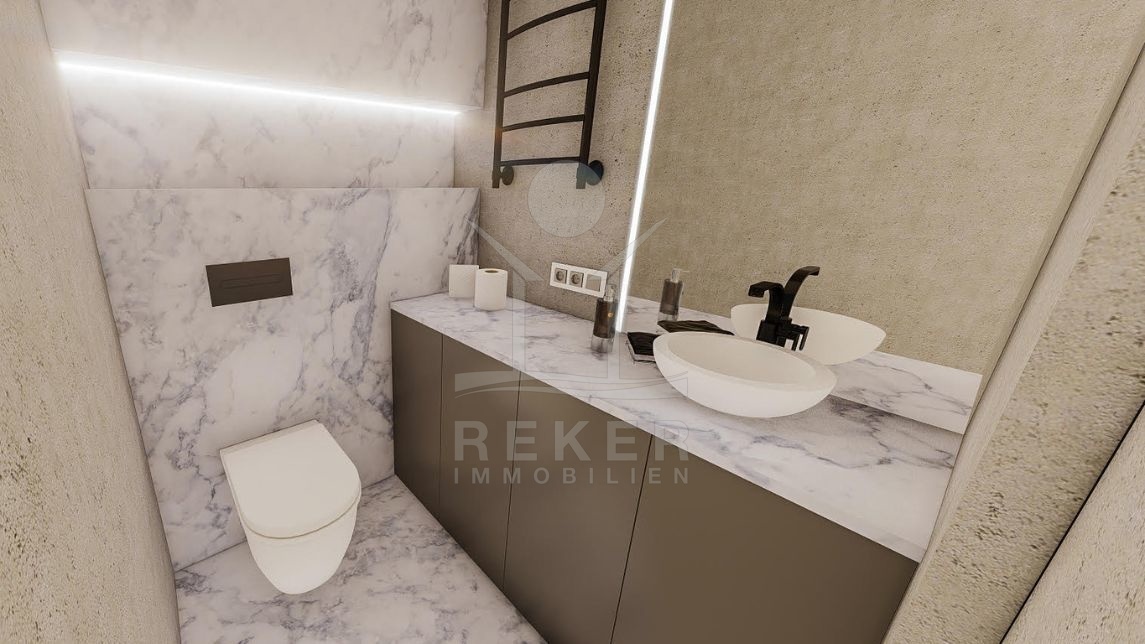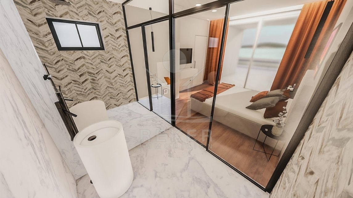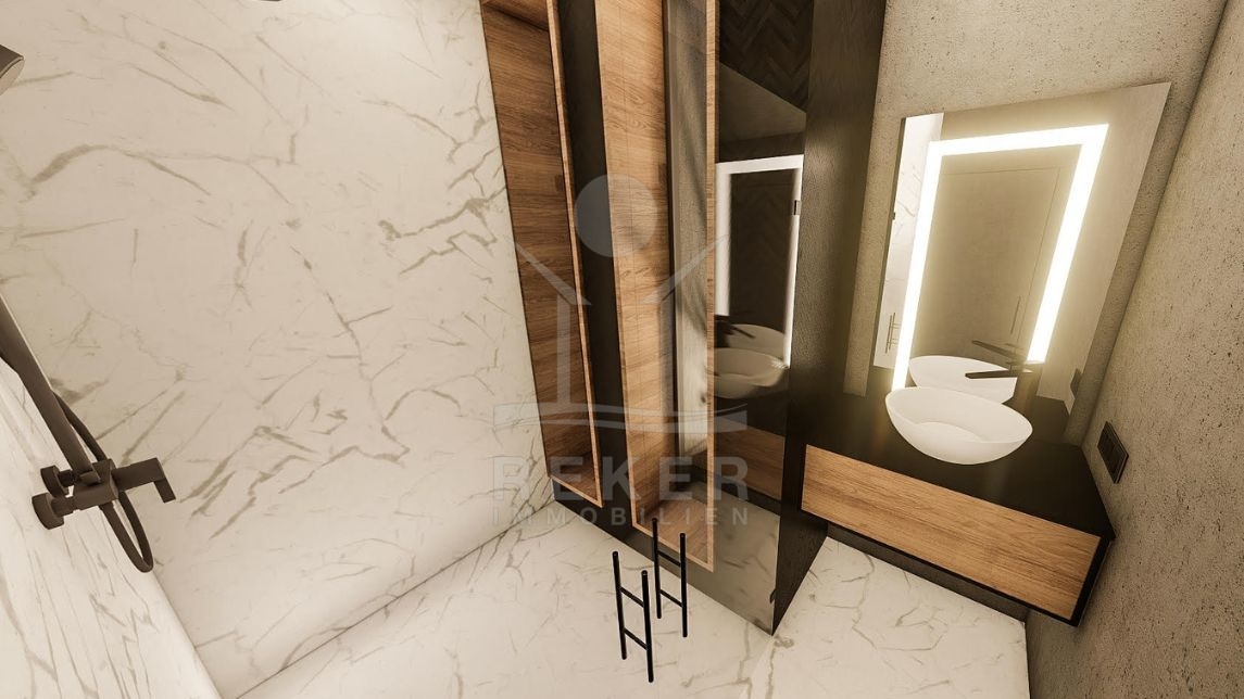Die Wohnung begeistert mit einem integrierten Smart Home System, das die Steuerung von Licht, Jalousien, Heizung, Kühlung, Einbruchalarm, Überwachung, Musik, Video-Gegensprechanlage und mehr ermöglicht. Im Erdgeschoss finden Sie einen großzügigen offenen Wohnraum mit einem gemütlichen Wohnbereich, einer modernen Küche und einem Essbereich. Des Weiteren gibt es in dieser Etage zwei Schlafzimmer mit eigenem Bad, einen Fitnessraum, Jacuzzi, ein Gäste-WC und eine Waschküche.