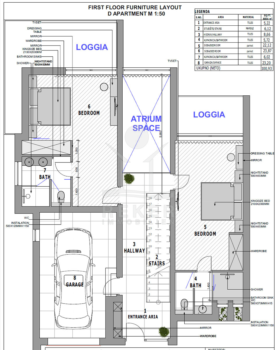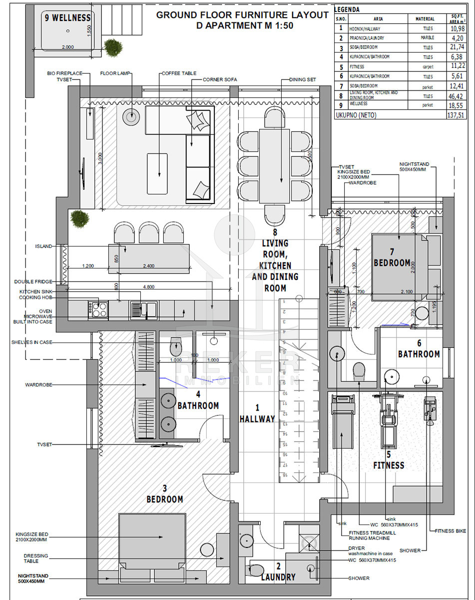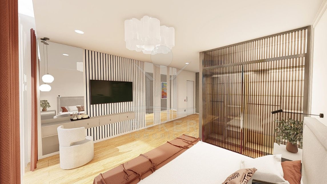 Die Wohnung begeistert mit einem integrierten Smart Home System, das die Steuerung von Licht, Jalousien, Heizung, Kühlung, Einbruchalarm, Überwachung, Musik, Video-Gegensprechanlage und mehr ermöglicht. Im Erdgeschoss finden Sie einen großzügigen offenen Wohnraum mit einem gemütlichen Wohnbereich, einer modernen Küche und einem Essbereich. Des Weiteren gibt es in dieser Etage zwei Schlafzimmer mit eigenem Bad, einen Fitnessraum, Jacuzzi, ein Gäste-WC und eine Waschküche.