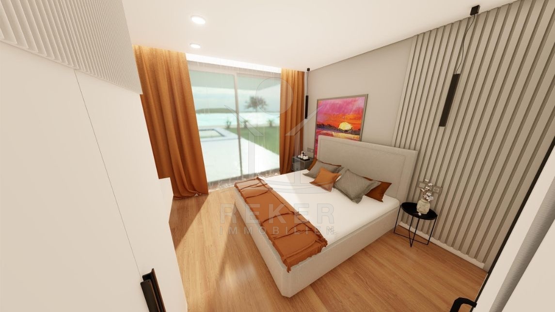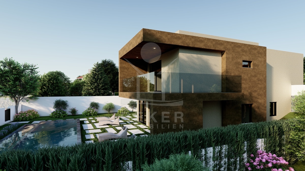 Die Luxusvilla bietet auf einem 608 m² großen Grundstück viel Raum und Privatsphäre. Das Gebäude erstreckt sich über 2 Etagen mit insgesamt 274 m² Wohnfläche. Eine moderne Wärmepumpe sorgt für eine nachhaltige Heizung und Kühlung des Hauses. Eine Garage bietet Platz für ein Auto und weitere Fahrzeuge können auf dem Hof vor dem Haus oder auf der Straße geparkt werden.