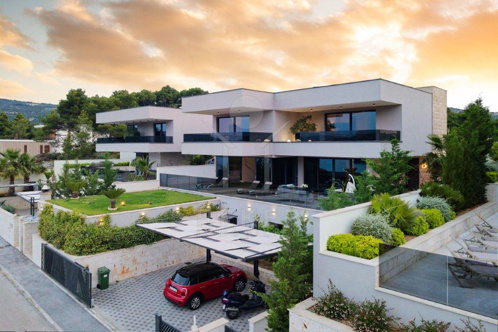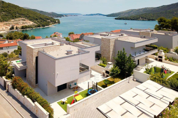 Die hochwertigen Luxusvillen befinden sich in der malerischen Umgebung nahe Trogir und bieten einen idyllischen Rückzugsort, nur 150 Meter von einem wunderschönen, ruhigen Kieselstrand entfernt. Die traumhafte Bucht ist vor starken Winden geschützt, wodurch sie ein perfekter Ort für entspannte Tage am Meer ist. Ein Supermarkt ist in nur 1 Minute Autofahrt (650 m) erreichbar, was zusätzlichen Komfort bietet. Auch die charmante Stadt Trogir ist nicht weit entfernt und beeindruckt mit ihrem historischen Flair, das auf die römische Vergangenheit zurückgeht.