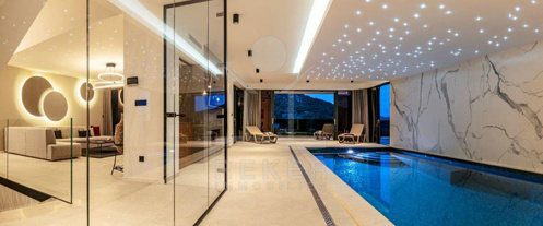 Die Badezimmer sind mit erstklassigen Materialien ausgestattet, um ein Gefühl von Luxus und Entspannung zu vermitteln. Darüber hinaus gibt es in den Villen Badezimmer, die andere Bereiche abdecken, darunter das Wohnzimmer, den Fitnessraum, die Sauna und den Innenpool.