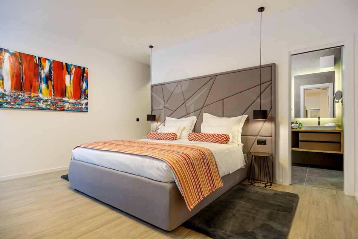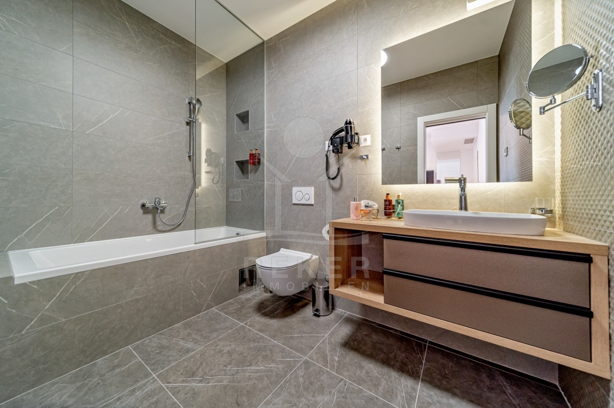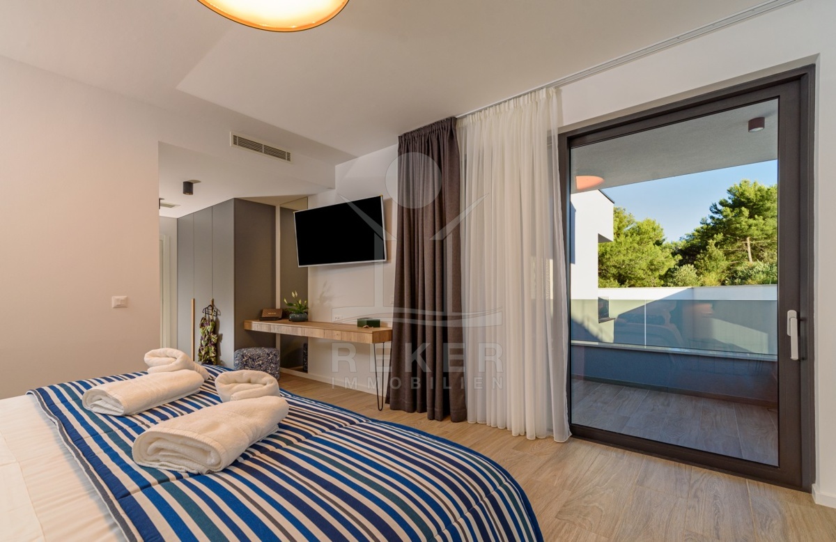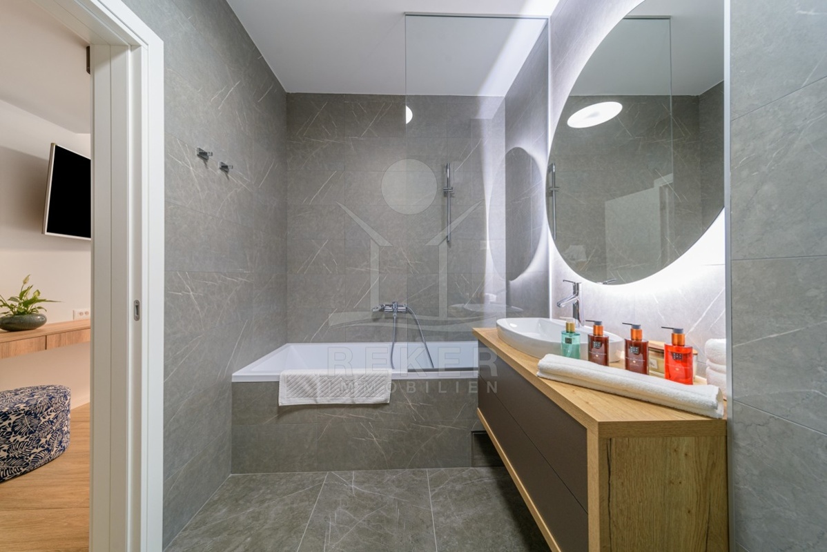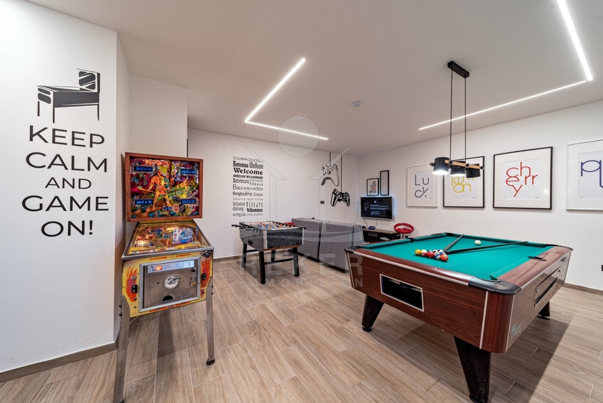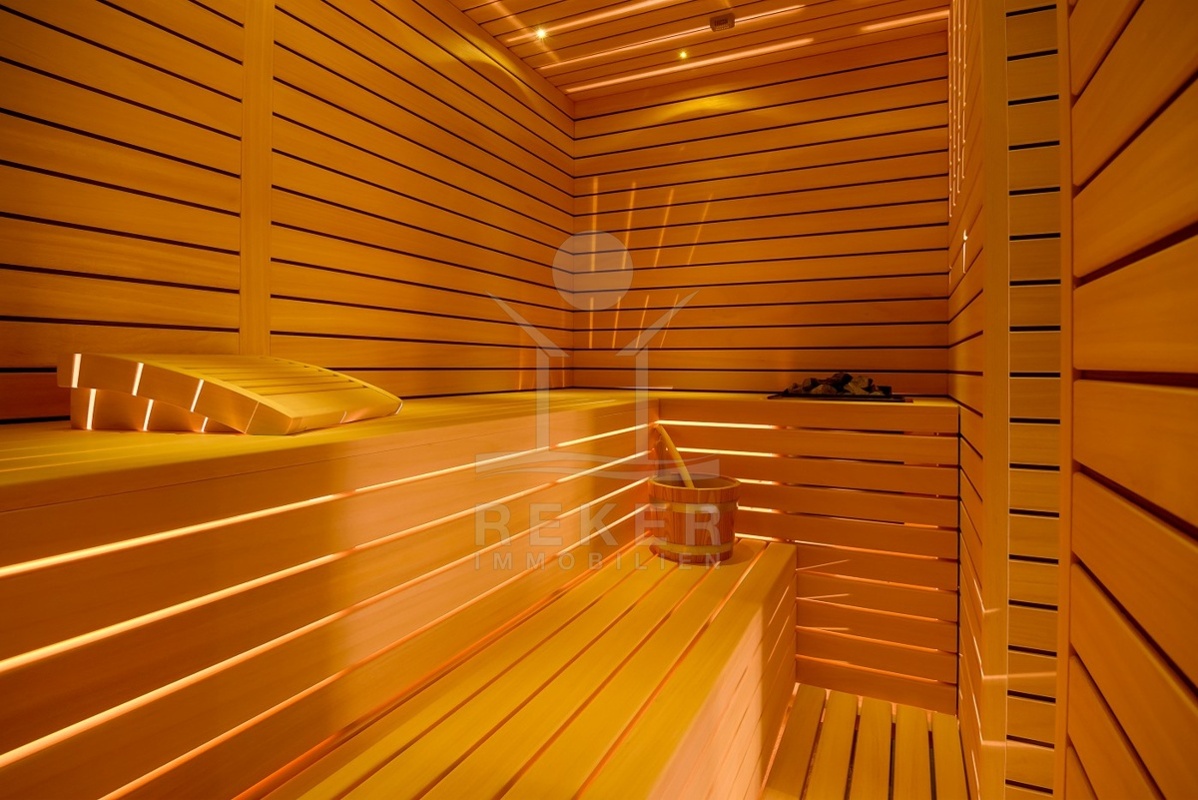 Perfektioniert wird die Villa durch das Untergeschoss, in dem sich ein Fitnessbereich und eine Sauna, eine Dusche, ein WC und eine Waschküche befinden. Alle 3 Luxus-Villen sind klimatisiert und mit absoluter Stilsicherheit luxuriös möbliert.