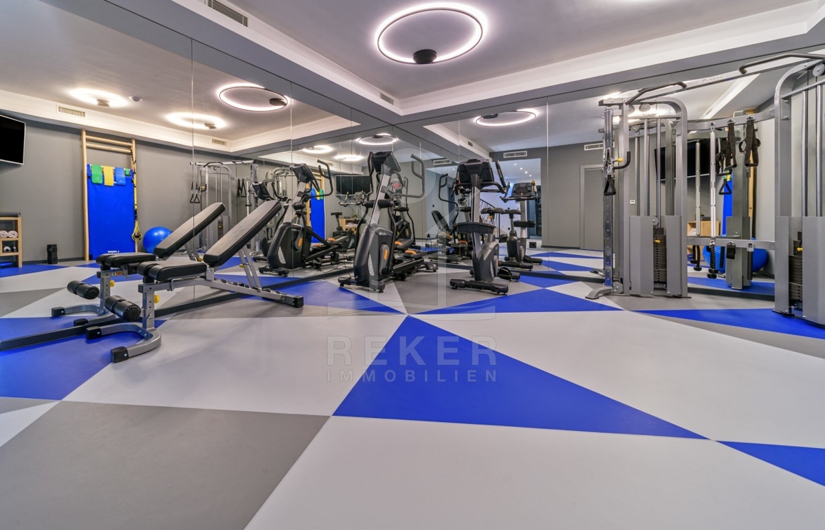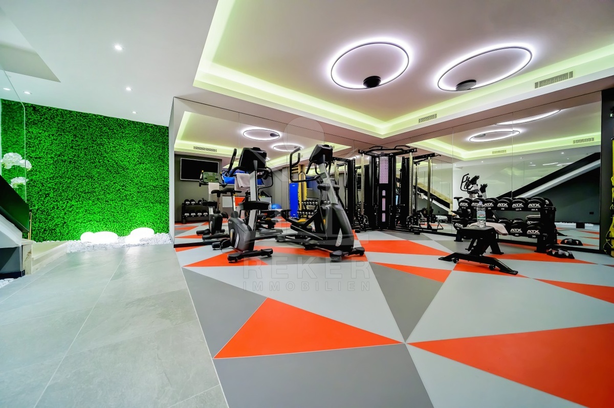 Im Untergeschoss finden Sie, wie in den anderen beiden Villen auch, einen Fitnessbereich, eine Sauna, ein WC, eine Dusche und eine Waschküche.