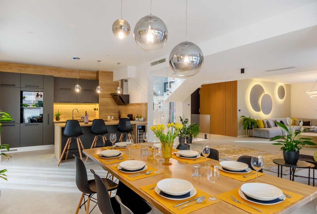 Das Erdgeschoss beinhaltet ein großes Wohnzimmer mit fantastisch ausgestatteter Küche und Essplatz, während Sie im Obergeschoss 4 Schlafzimmer, jeweils mit eigenem, luxuriösen Bad finden.