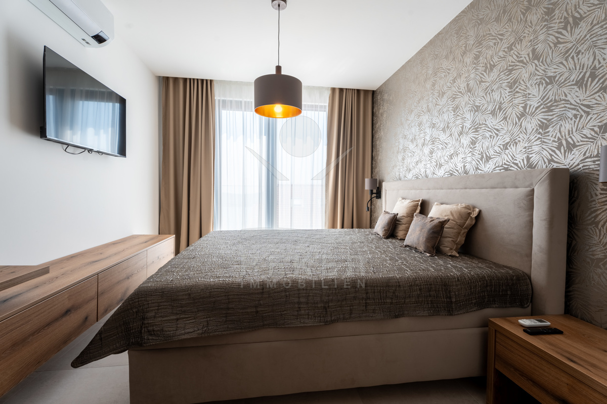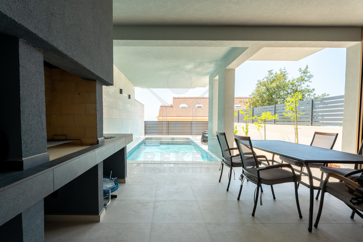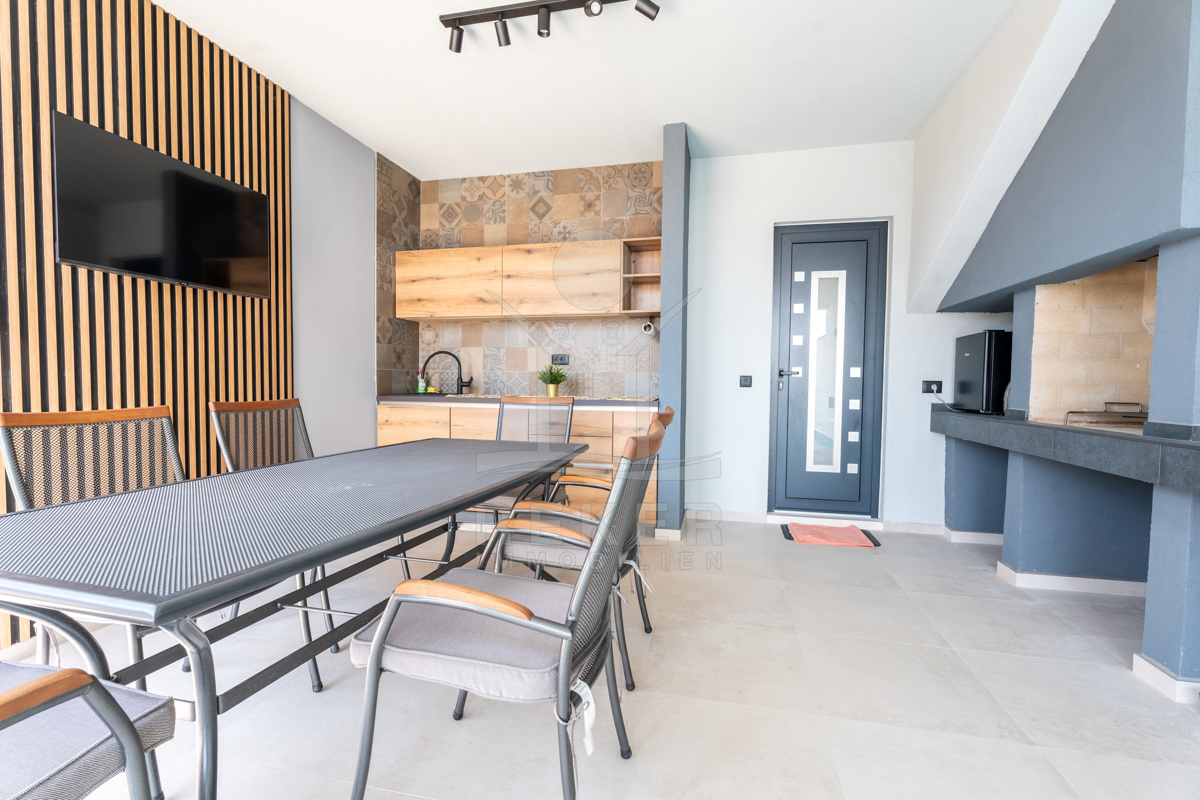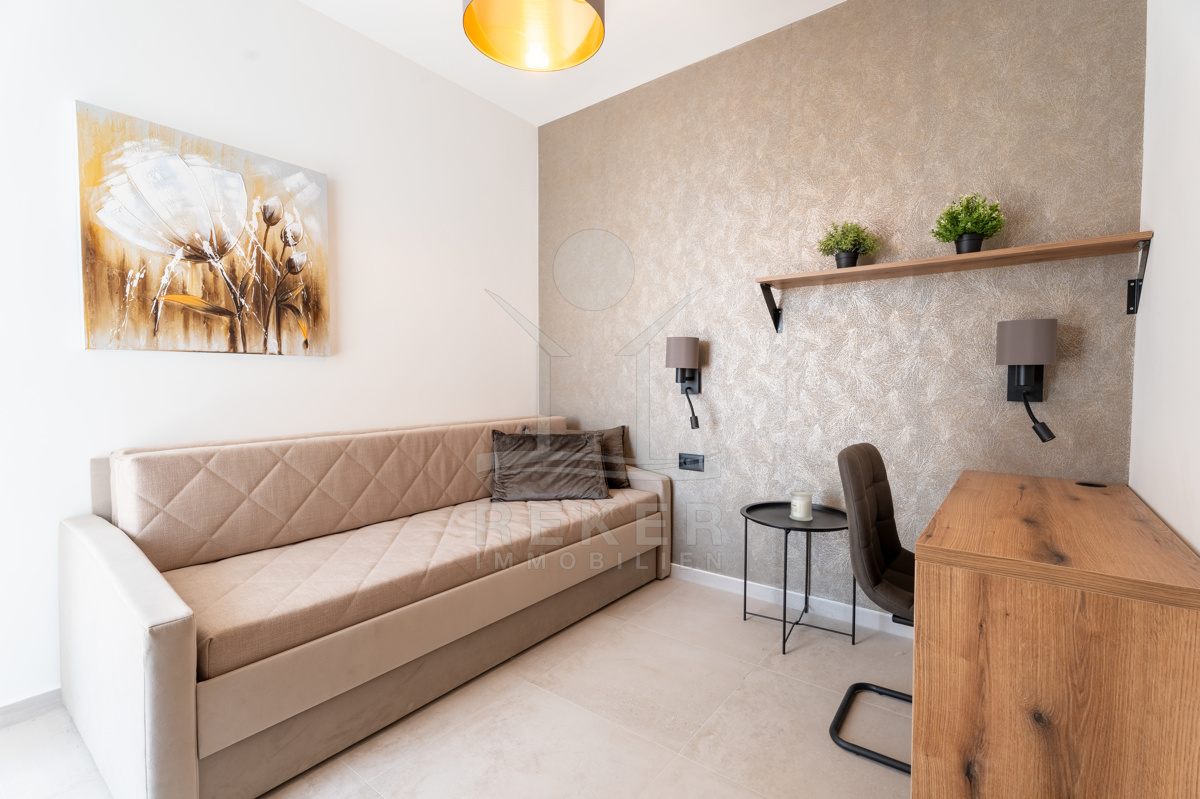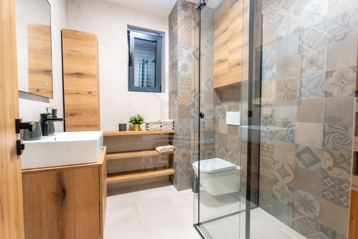 Die exklusive Neubau-Maisonette ist ein Teil einer modernen Flachneubauvilla und erstreckt sich über 2 Etagen mit einer großzügigen Wohnfläche von 150 m². Mit einer Gartenfläche von 208 m², die mit einem automatisierten Gartenbewässerungssystem ausgestattet ist, verbringen Sie weniger Zeit mit Gartenpflege und mehr Zeit mit Entspannung. Das Baujahr 2024 garantiert, dass alle Ausstattungsmerkmale auf dem neuesten Stand der Technik sind, einschließlich Pooltechnologie, Klimaanlage, Lüftung, solarer Warmwasserbereitung sowie hochwertigen Sanitäranlagen und Keramik.