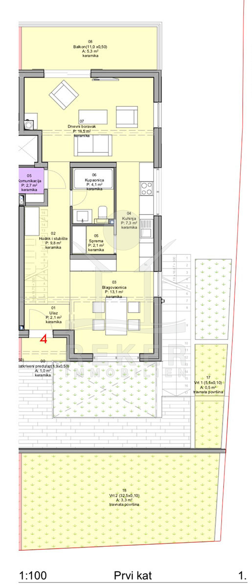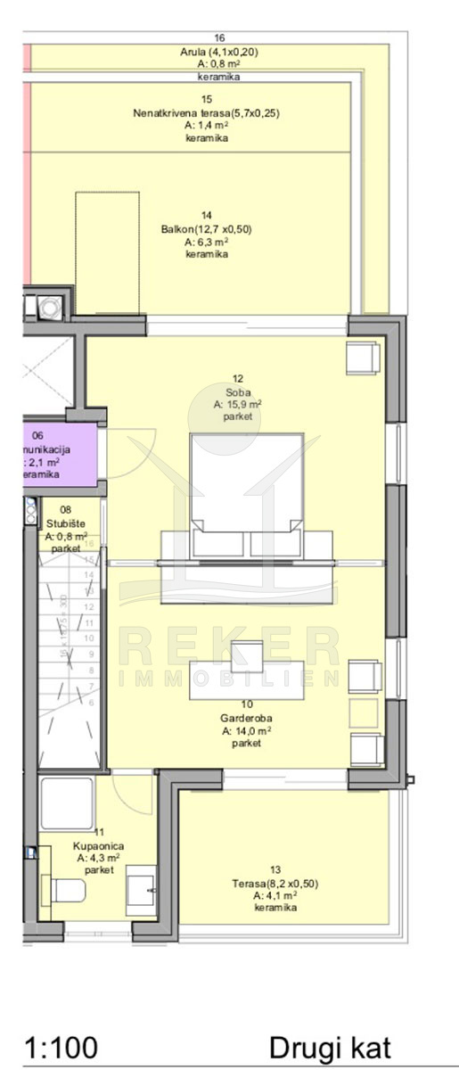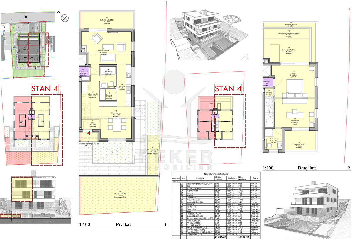 Das Apartment befindet sich in einem Wohngebäude aus 4 Einheiten, das aus Untergeschoss, Erdgeschoss und zwei Obergeschossen besteht. Die zweigeschossige Wohnung, die sich über den 2. und 3. Stock erstreckt, ist hochqualitativ und verfügt über einen Garagenparkplatz und bietet ein komfortables und stilvolles Wohnen. Die Bauarbeiten werden voraussichtlich im Oktober 2023 abgeschlossen sein.