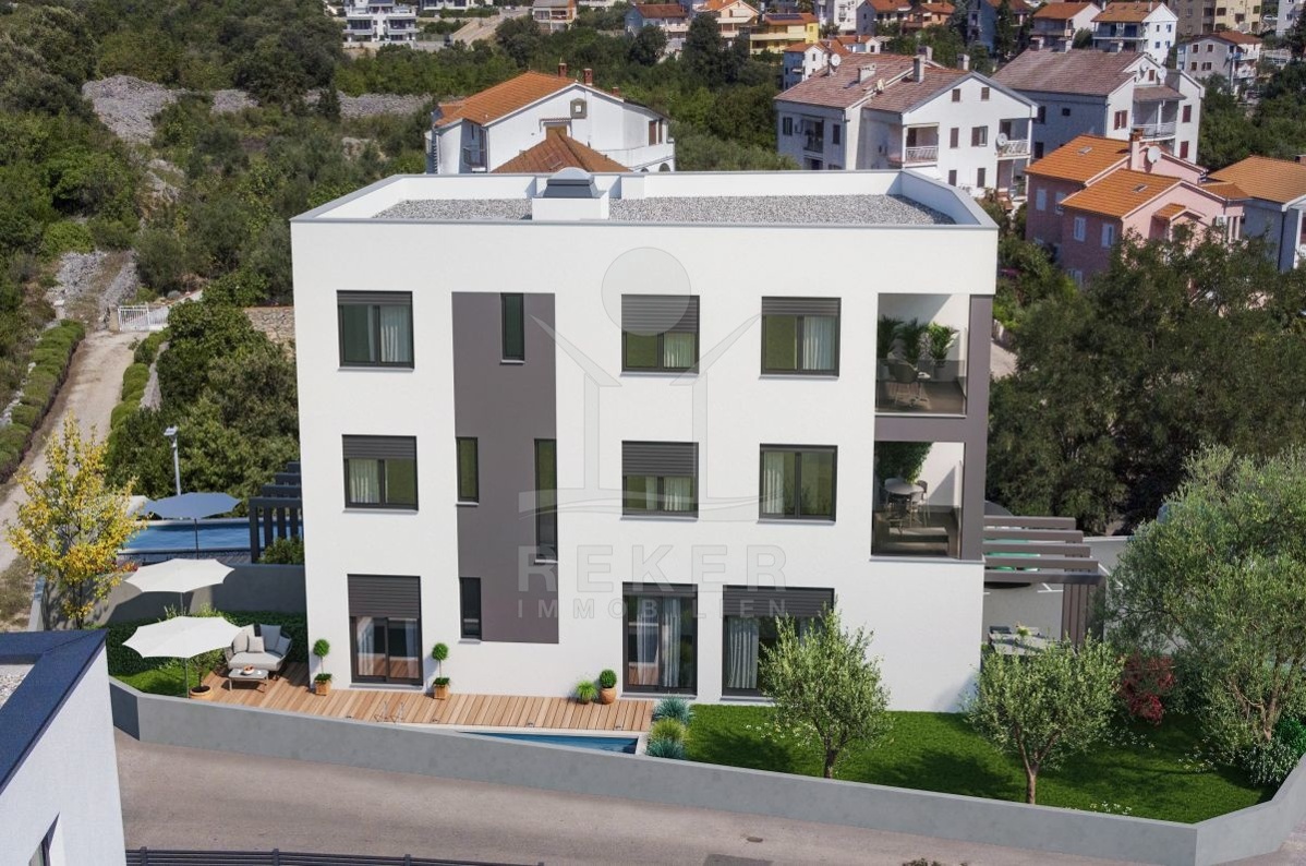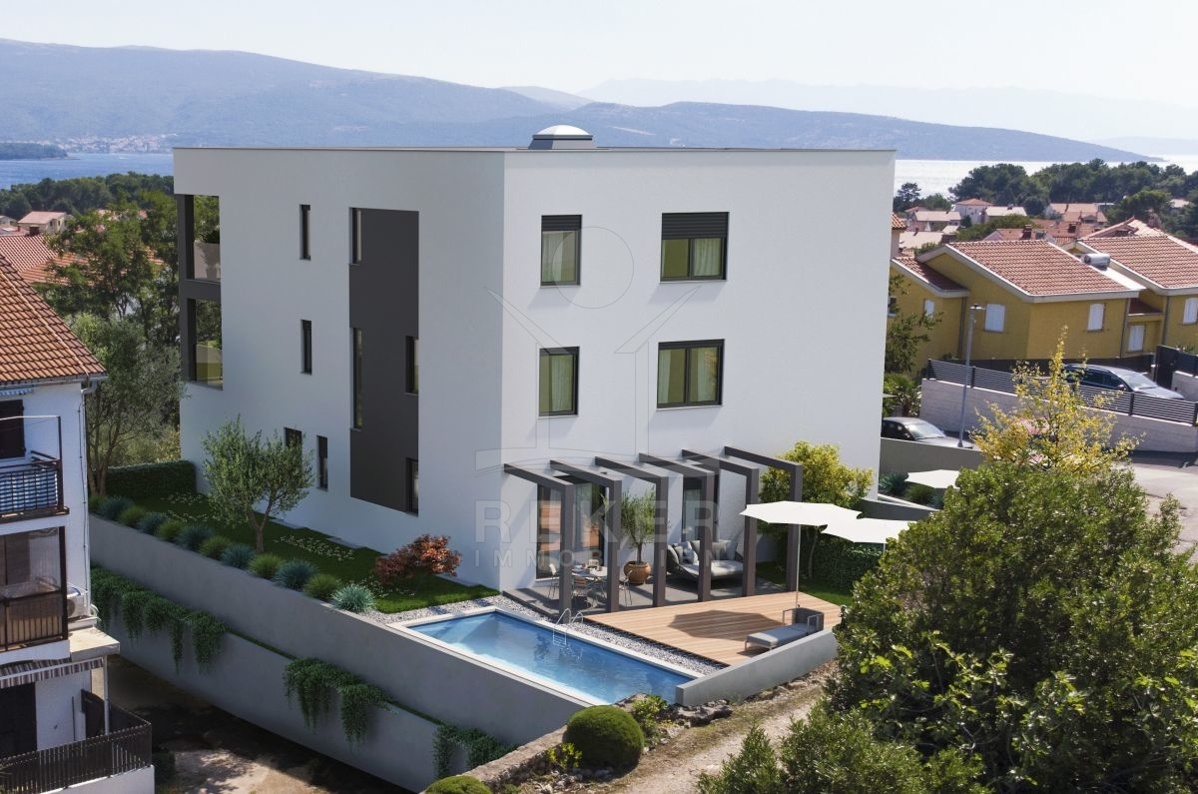 LUXURIÖSE MAISONETTEWOHNUNG AUF DER INSEL KRK: NEUBAU MIT GARTEN & POOL