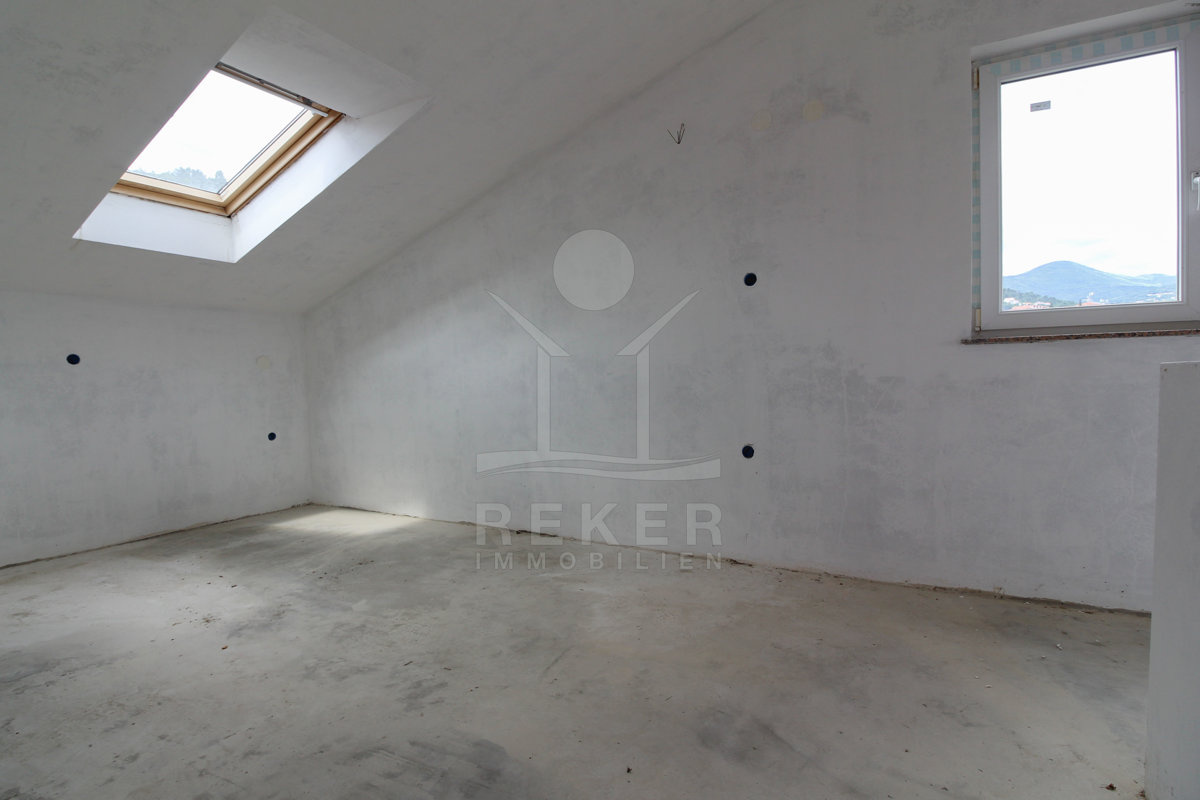 Der Dachboden entspricht von der Wohnfläche dem unteren Geschoss, so verfügen sie auch hier oben über einen traumhaften Balkon.