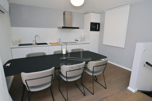 Eine Etage darüber: zwei Schlafzimmer, ein Bad und ein Abstellraum mit Waschmaschine. Praktisch und durchdacht. Perfekt für Kinder, Gäste oder ruhige Nächte. Ganz oben liegt ein zweiter Wohnbereich, ebenfalls mit eigener Küche. Der Clou? Die große Dachterrasse mit fast 43 m². Lust auf ein Frühstück mit Blick aufs Meer? Oder lieber zurückziehen, Buch lesen, Ruhe genießen? Hier oben geht beides.