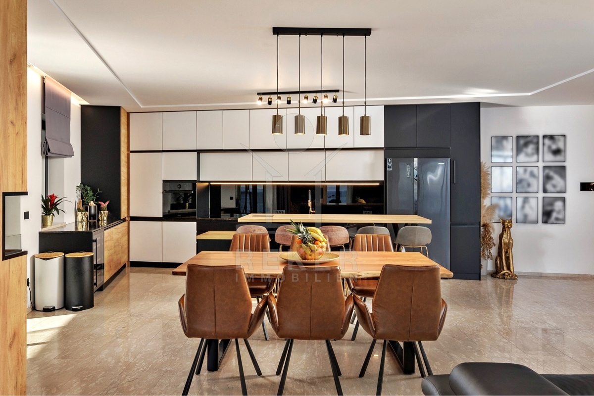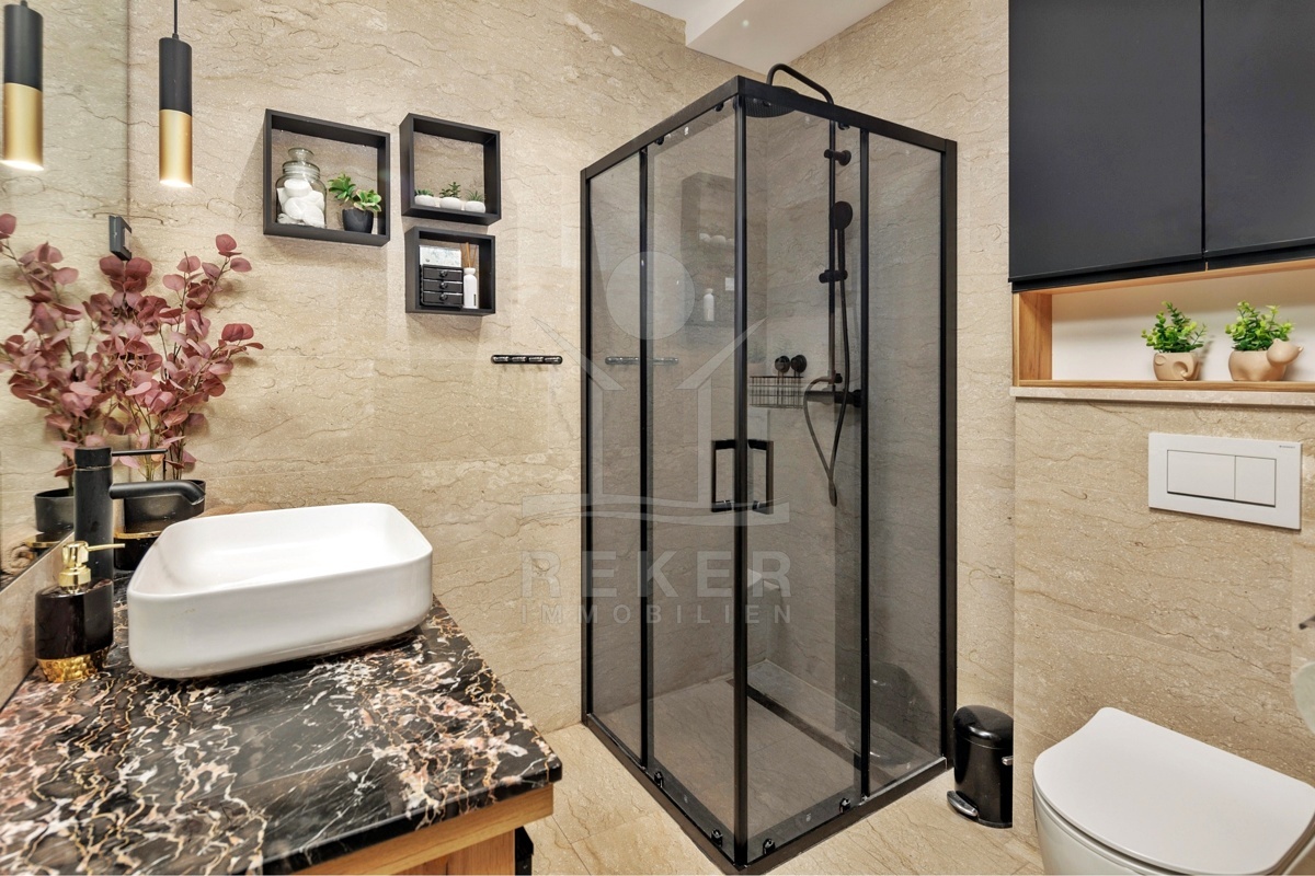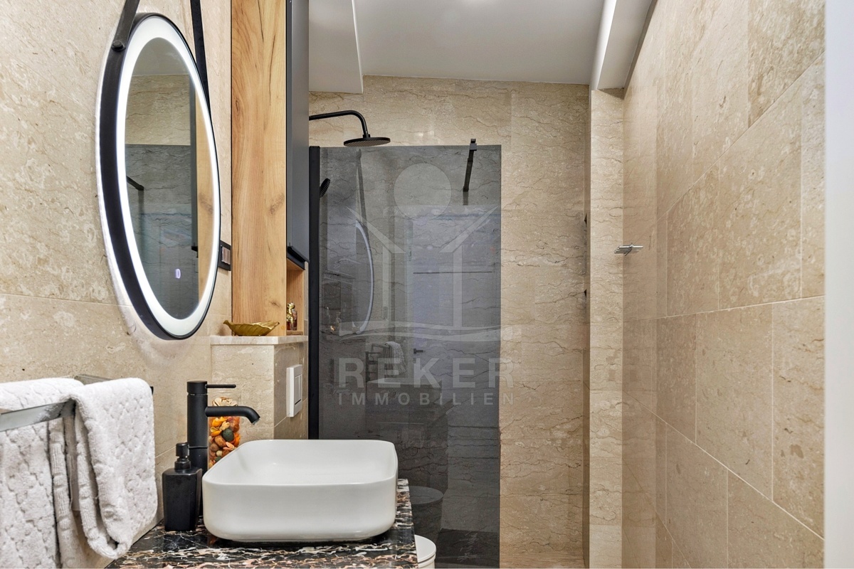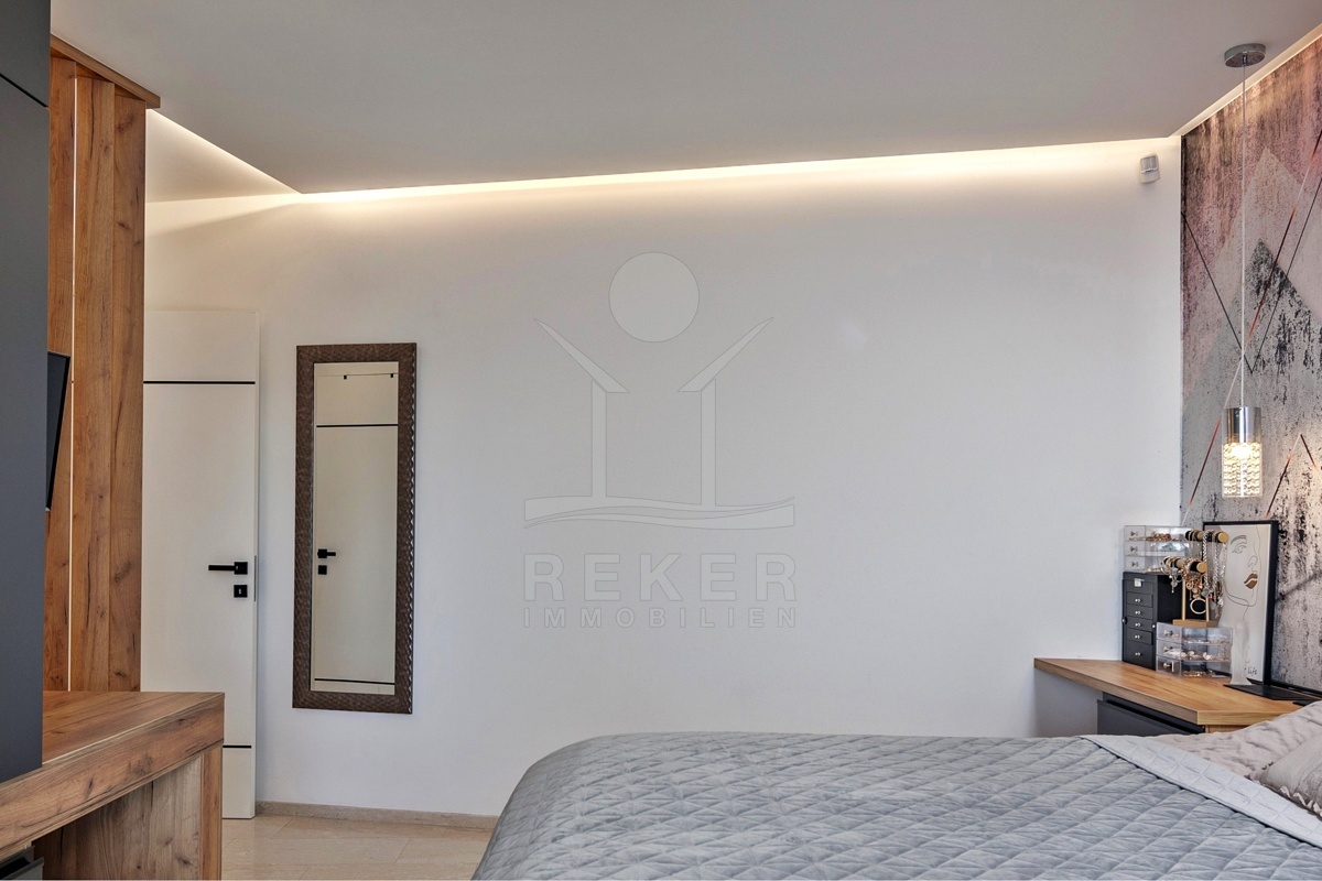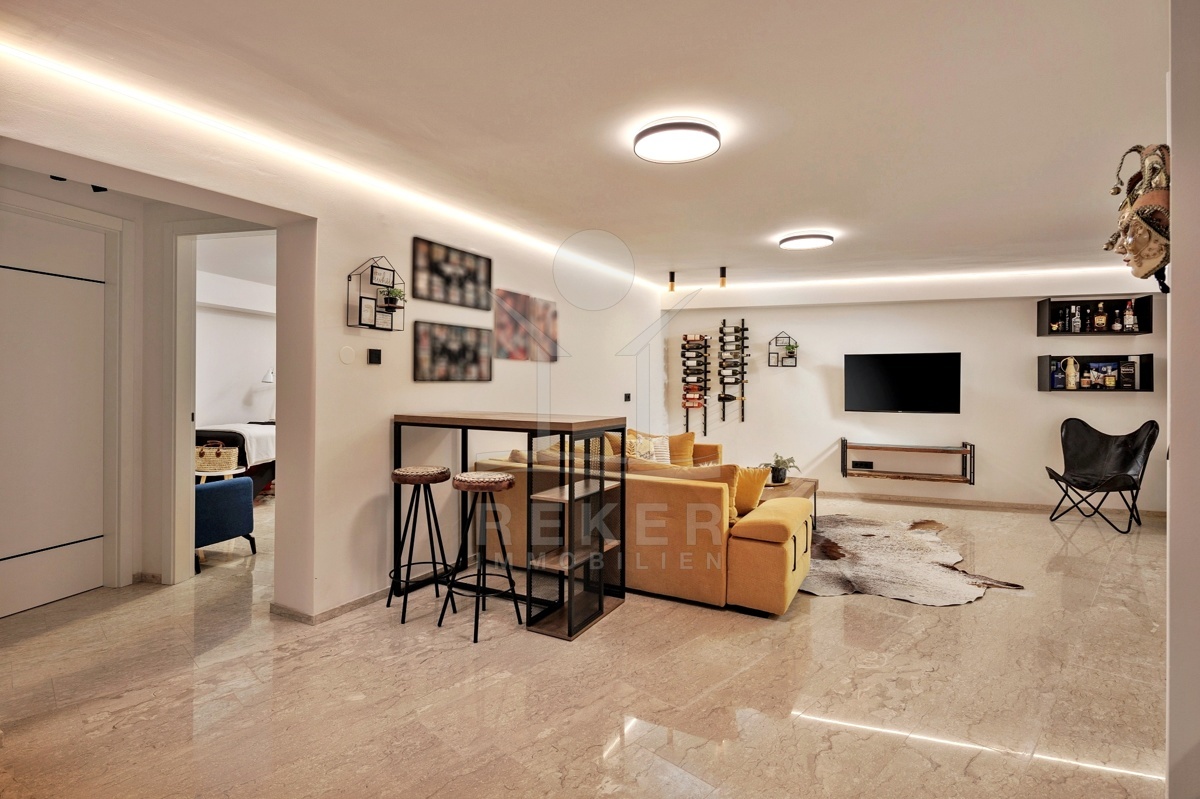 Innen zeigt sich die Wohnung hochwertig, großzügig und komfortabel. Alles ist bezugsfertig, keine Baustellen, kein Planungsstress. Die Materialien sind langlebig, stilvoll und leicht zu pflegen. Smart-Home-System, Fußbodenheizung, Klimaanlagen, Alarmsystem: Sie steuern alles, wie Sie wollen. Per App, von unterwegs oder direkt im Raum.