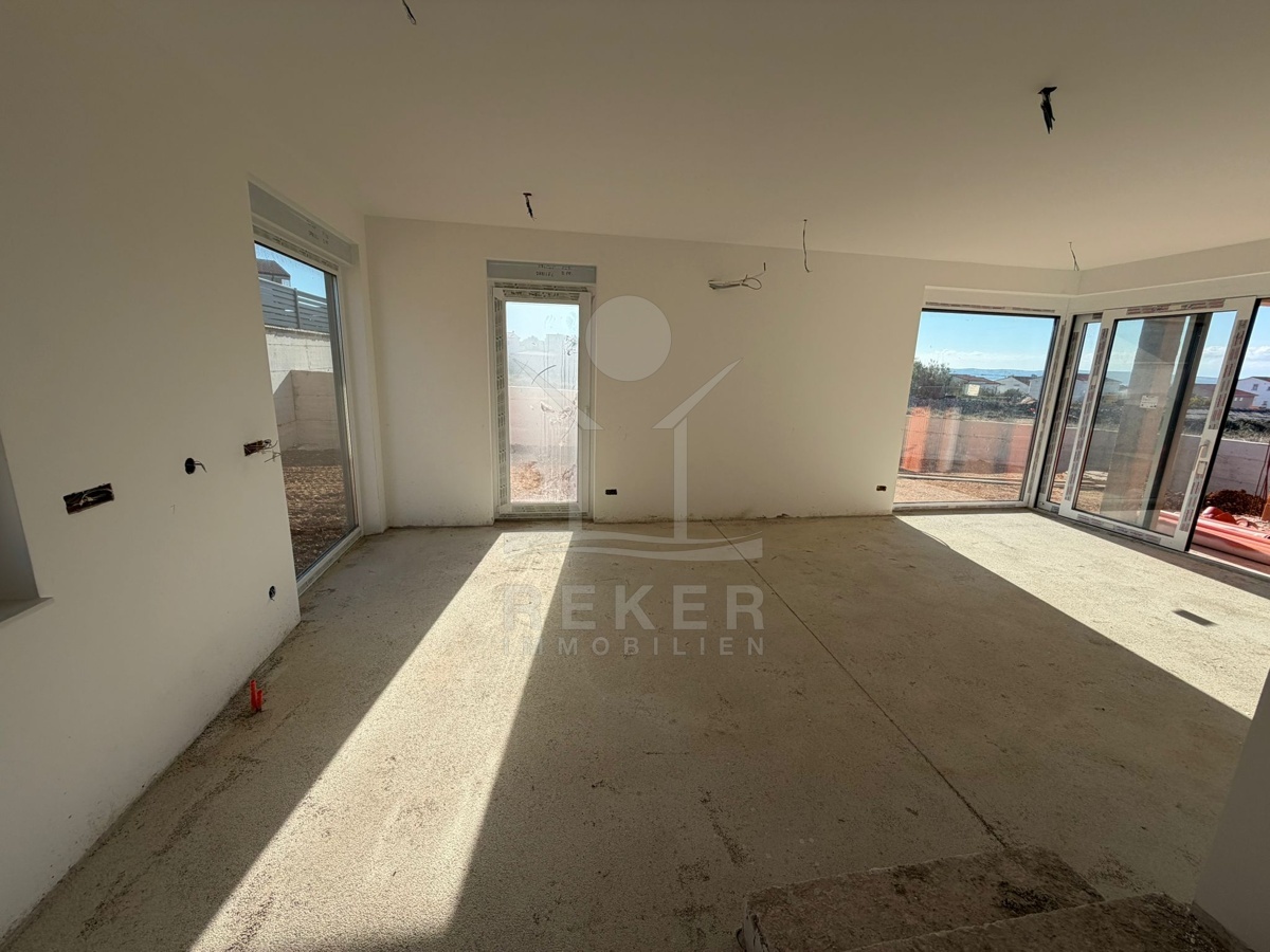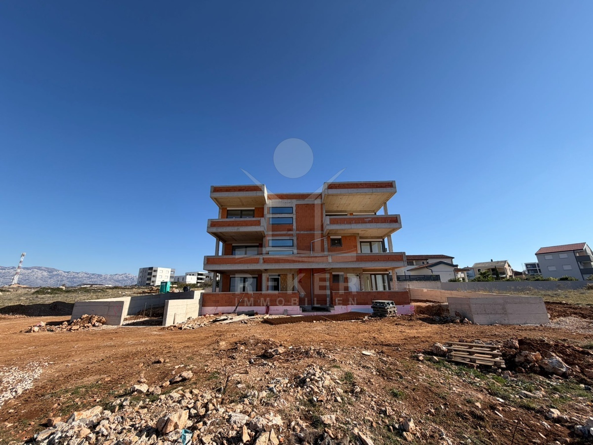 Povljana befindet sich im Süden der Insel Pag, eingerahmt von Meer und dem markanten Velebit-Gebirge. Das neue Wohnhaus entsteht auf einer sanften Anhöhe, etwa 400 m vom Meer und 950 m vom Strand entfernt. Von hier bietet sich ein weiter Blick über die Bucht bis zu den Bergen. Besonders in den oberen Etagen entsteht ein eindrucksvolles Panorama. Die Nachbarschaft ist ruhig und vermittelt eine angenehme Wohnatmosphäre, ideal für alle, die Entspannung und Natur suchen.
