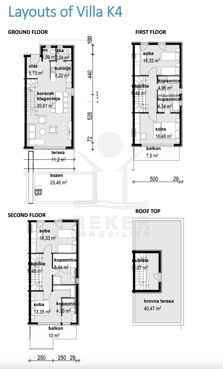 Die großzügige Dachterrasse in der dritten Etage bietet mit 40,47 m² einen schönen und weiten Ort im Freien, um Zeit zu verbringen und die wundervolle Aussicht zu genießen. Hier können Sie sich in einem eleganten Rückzugsort entspannen.