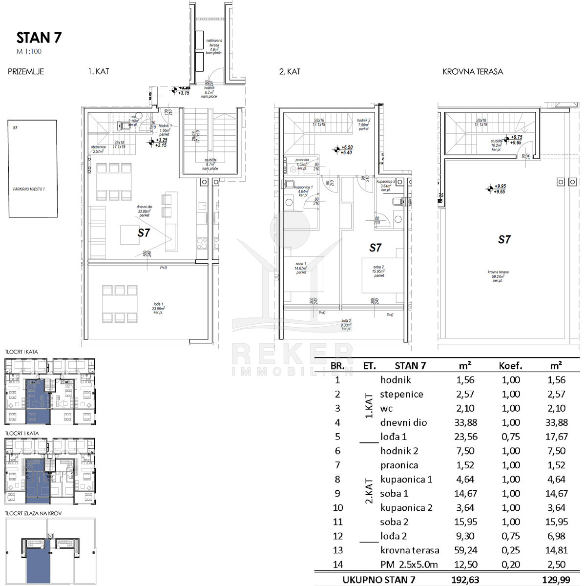 Maisonette mit 2 Loggien & 59 m² Dachterrasse – Meerblick inklusive Unten: heller Wohnbereich mit Meerblick und Gäste-WC. Oben: zwei Schlafzimmer, beide mit Bad en suite. Und dann die Dachterrasse – fast 60 m², frei, offen, mit Blick aufs Wasser. Dazu zwei große Loggien. Luft, Licht, Aussicht – auf drei Ebenen. Klimaanlage in jedem Raum. Fußbodenheizung von unten bis oben. Elektrische Jalousien, Moskitonetze, pflegeleichte PVC-Fenster.
