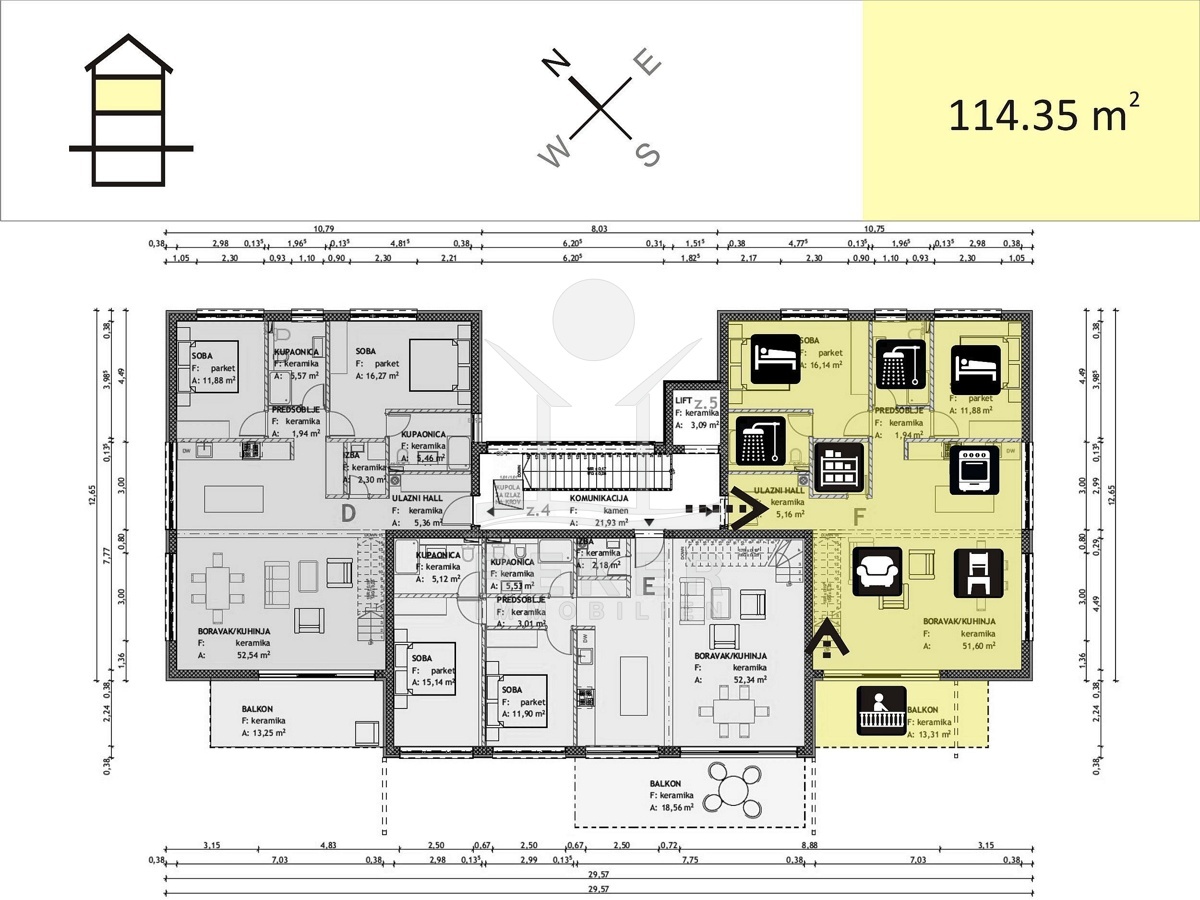 Ihr neuer Wohntraum beginnt im 1. Stockwerk mit einem Wohnzimmer mit offener Küche und Essplatz, 2 Schlafzimmern, von denen eins ein eigenes Bad hat, ein separates Badezimmer und eine 5 m² große Speisekammer. Dank Klimaanlage und Fußbodenheizung können Sie sich auf ein zu jeder Jahreszeit optimal temperiertes Wohlfühl-Erlebnis freuen.