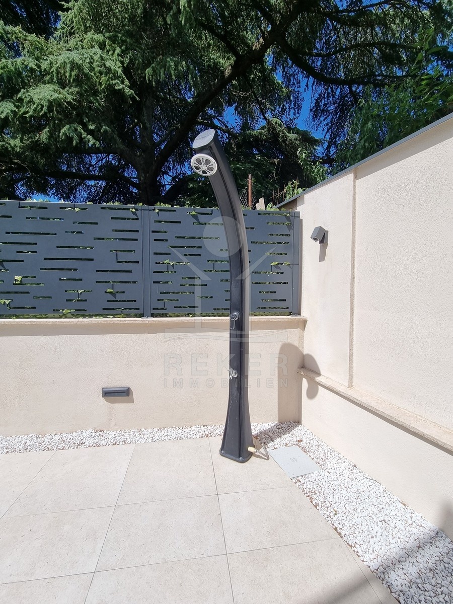 Und draußen? Da gehört die Fläche ganz Ihnen. Der Garten ist über 90 m² groß, komplett eingefriedet – mit Grillbereich, Außendusche und dem privaten Pool. Die Terrasse ist teils überdacht, teils offen. Perfekt für Sommertage. Der Stellplatz ist direkt vor der Tür. Abstellraum im Keller: inklusive.