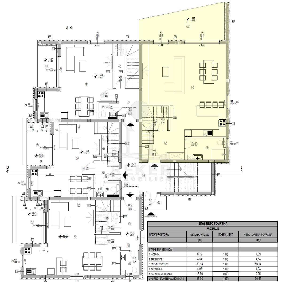 Der Neubau liegt in einem ruhigen Stadtteil von Vodice, nur etwa 1500 m vom Meer und vom Zentrum entfernt. In der Nähe finden Sie einen Supermarkt und eine gute Anbindung an die Verkehrswege. Trotz der unmittelbaren Nähe zur Stadt ist dieser Teil von Vodice charmant und entspannend, perfekt für all jene, die eine ruhige Wohnatmosphäre suchen.