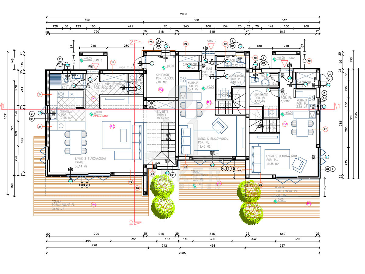 Das Gebäude erstreckt sich auf einem Grundstück von 656 m² und besteht aus drei Maisonette-Wohnungen, die leicht versetzt zueinander liegen, um größtmögliche Privatsphäre zu gewährleisten. Die moderne Architektur mit geraden Linien verleiht dem Gebäude ein zeitgemäßes Erscheinungsbild. Die Fertigstellung ist für den Sommer 2024 geplant, sodass Sie bald in Ihrem neuen Zuhause einziehen können.