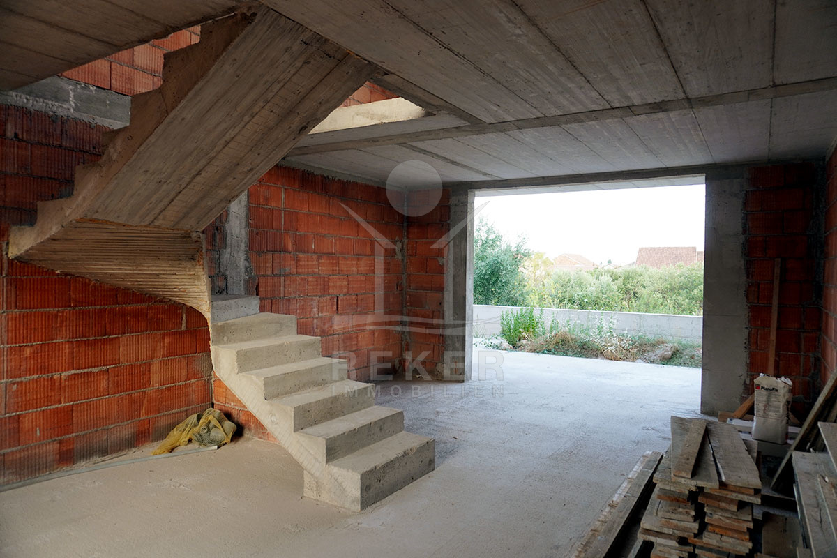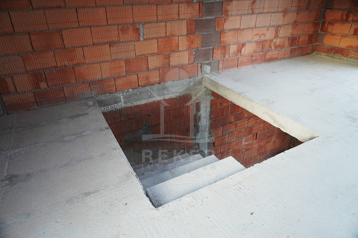 Die Außenwände stehen bereits und der Rohbau ist nahezu abgeschlossen. Das bedeutet, dass das Gebäude bereits seine endgültige Form hat, aber die Arbeiten im Inneren sind noch nicht abgeschlossen.
