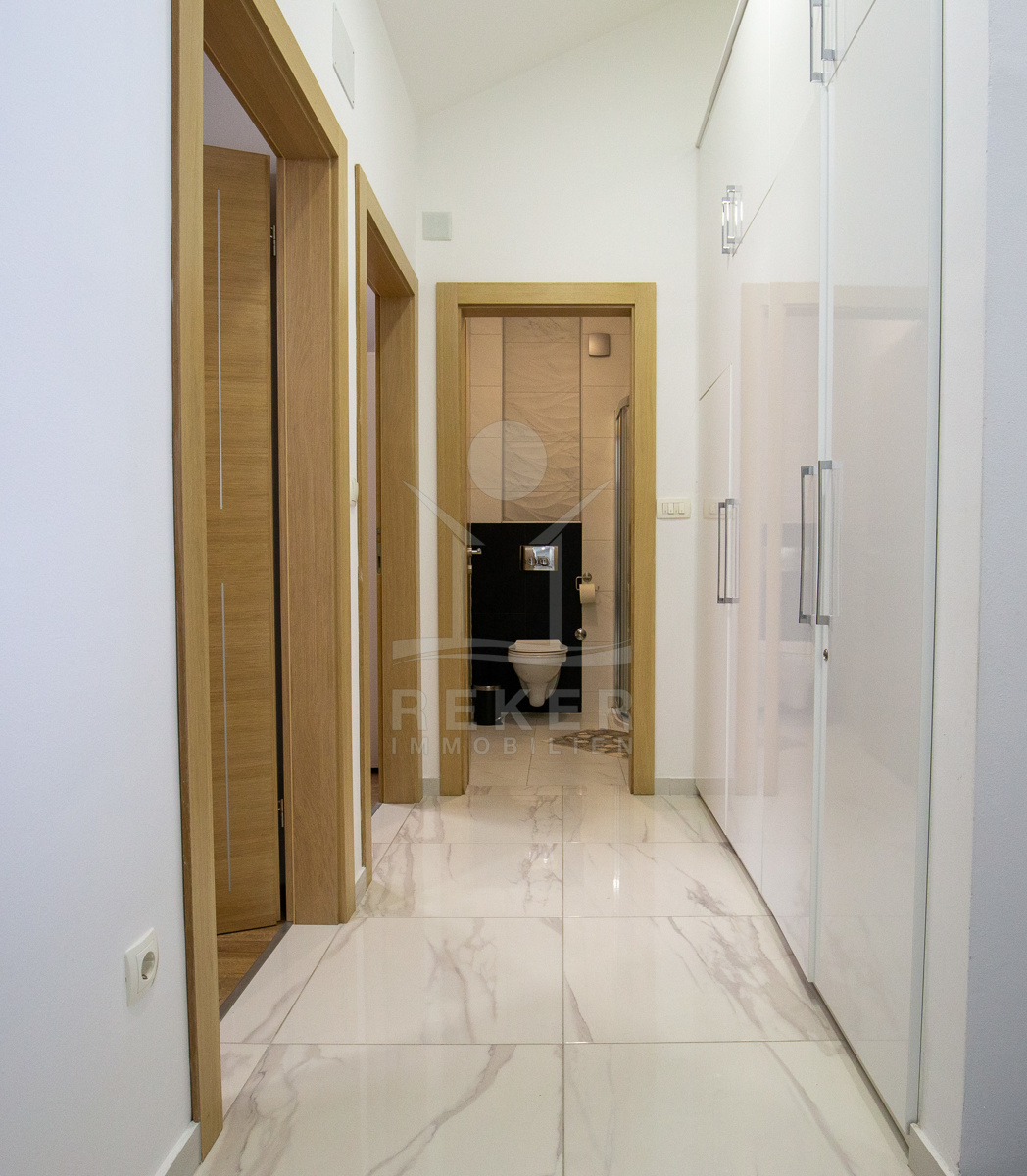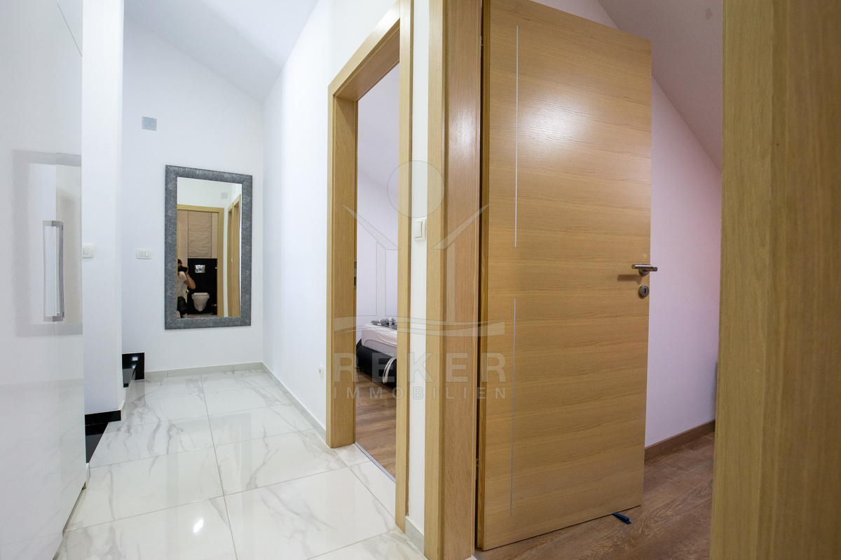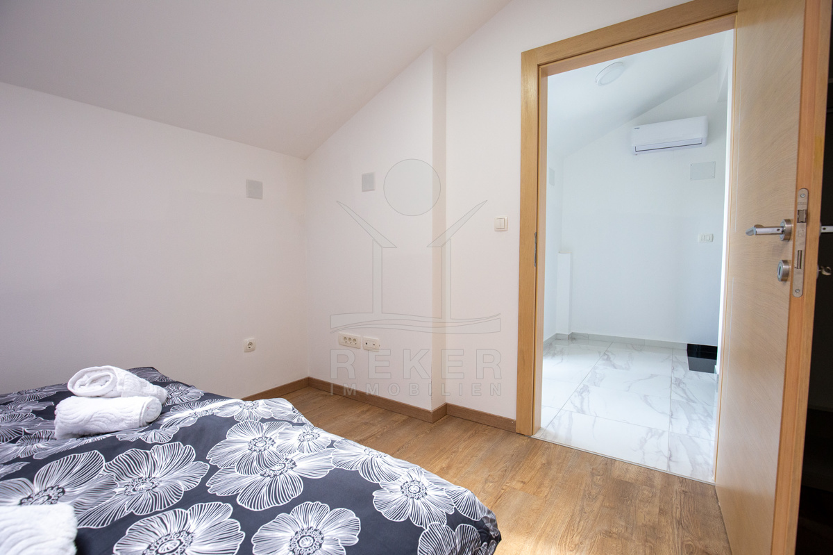 Die bezaubernde Maisonette in Zaton bietet eine idyllische Umgebung für erholsame Urlaubstage. Das Küstendorf ist nur wenige Schritte vom Strand und Meer entfernt und verspricht unvergessliche Stunden am türkis schimmernden Wasser der Adria. Zaton selbst begeistert mit einem reichen kulturellen Erbe, malerischen Stränden und erstklassigen Freizeitmöglichkeiten. Restaurants, Einkaufsmöglichkeiten und traditionelle Gasthäuser sorgen für kulinarische Genüsse. Die unmittelbare Nähe zu den Städten Nin und Zadar ermöglicht spannende Erkundungstouren. Die Maisonette selbst punktet mit einer ruhigen Lage, umgeben von der natürlichen Schönheit Dalmatiens. Es erwarten Sie erholsame Stunden in einem traumhaften Ambiente, das Entspannung und Erholung garantiert.