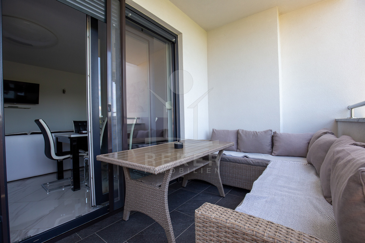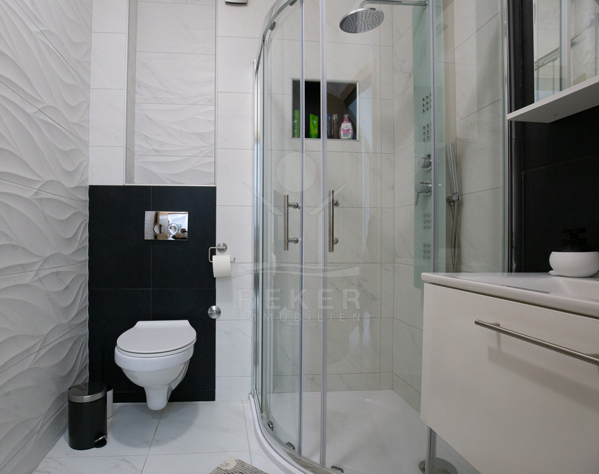 Das Apartment ist mit einer Klimaanlage ausgestattet und wird voll möbliert verkauft. Im Obergeschoss erwartet Sie ein offener Wohn-, Ess- und Küchenbereich sowie ein überdachter Balkon mit Sitzlounge und einer malerischen Aussicht.