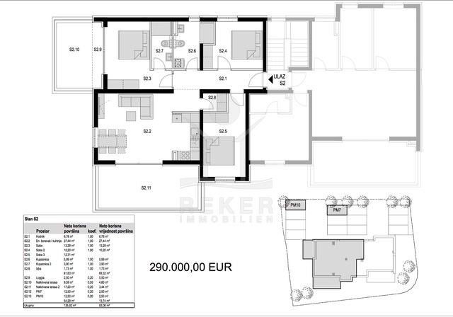 ▶ S2: 83,06 m² Wohnfläche, 4 Zimmer, 2 Bäder, 2 Balkone