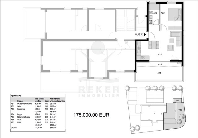 ▶ A3: 64,80 m² Wohnfläche, 2 Zimmer, Bad