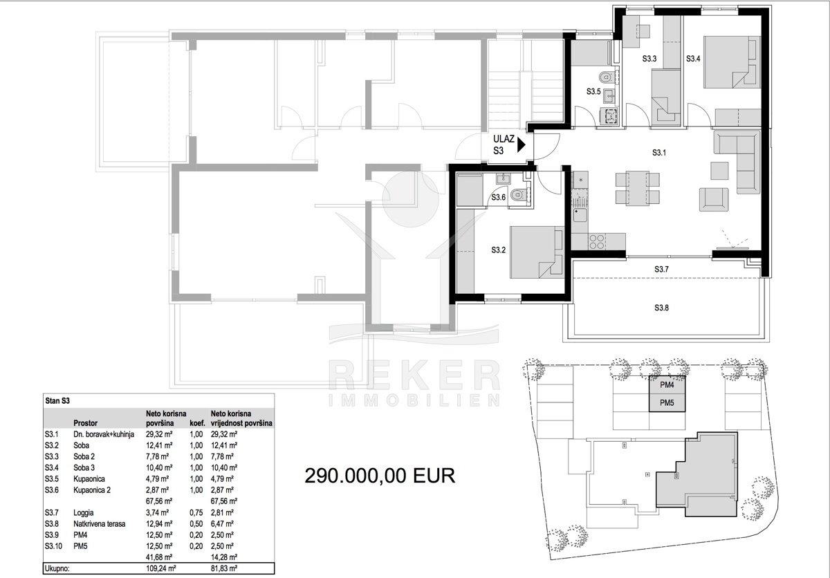 ▶ S3: 83,83 m² Wohnfläche, 5 Zimmer, 2 Bäder, Balkon