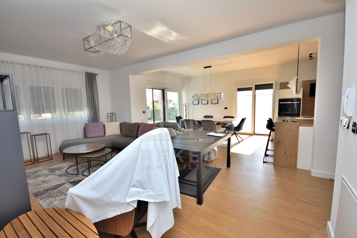 Die zweistöckige Wohnung erstreckt sich über 147,78 m² m² und befindet sich in einem Wohnhaus, das im Jahr 2021 nach den neuesten Standards erbaut wurde. Die PVC-Tischlerei, elektrischen Jalousien, moderne Sanitäranlagen sowie elektrische Wasser-Fußbodenheizung und Klimaanlagen in den Schlafzimmern und im Wohnzimmer garantieren höchsten Wohnkomfort. Zur Wohnung gehört des Weiteren ein Parkplatz für Ihr Auto.