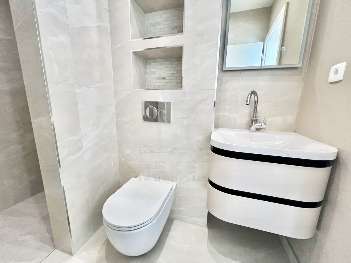 Der Neubau in Crikvenica befindet sich in günstiger städtischer Lage, nur 450 Meter vom Meer entfernt. Sie bietet ein komfortables und luxuriöses Wohnen mit allen Annehmlichkeiten in unmittelbarer Nähe. Durch die zentrale Lage erreichen Sie bequem das Meer sowie das pulsierende Zentrum von Crikvenica, wo Sie eine Vielzahl von Einrichtungen wie Einkaufsmöglichkeiten, öffentliche Verkehrsmittel, Schulen, Parks, Sportzentren und Restaurants finden. Crikvenica, als beliebtester Urlaubsort der Kvarner Bucht bekannt, beeindruckt mit einer 8 km langen Riviera entlang der Küste, die seit über 125 Jahren Touristen aus aller Welt anzieht. Hier erwarten Sie kristallklares Meer, traumhafte Strände und vielfältige Sport- und Freizeitmöglichkeiten. Abends laden die Restaurants entlang der Uferpromenade zu kulinarischen Genüssen ein, während die Bars und Tavernen ein romantisches Ambiente bieten. Für diejenigen, die das Nachtleben bevorzugen, bietet der Platz Stjepana Radica unvergessliche Abende voller Unterhaltung. Erleben Sie das mediterrane Lebensgefühl in dieser einzigartigen Penthousewohnung in Crikvenica.
