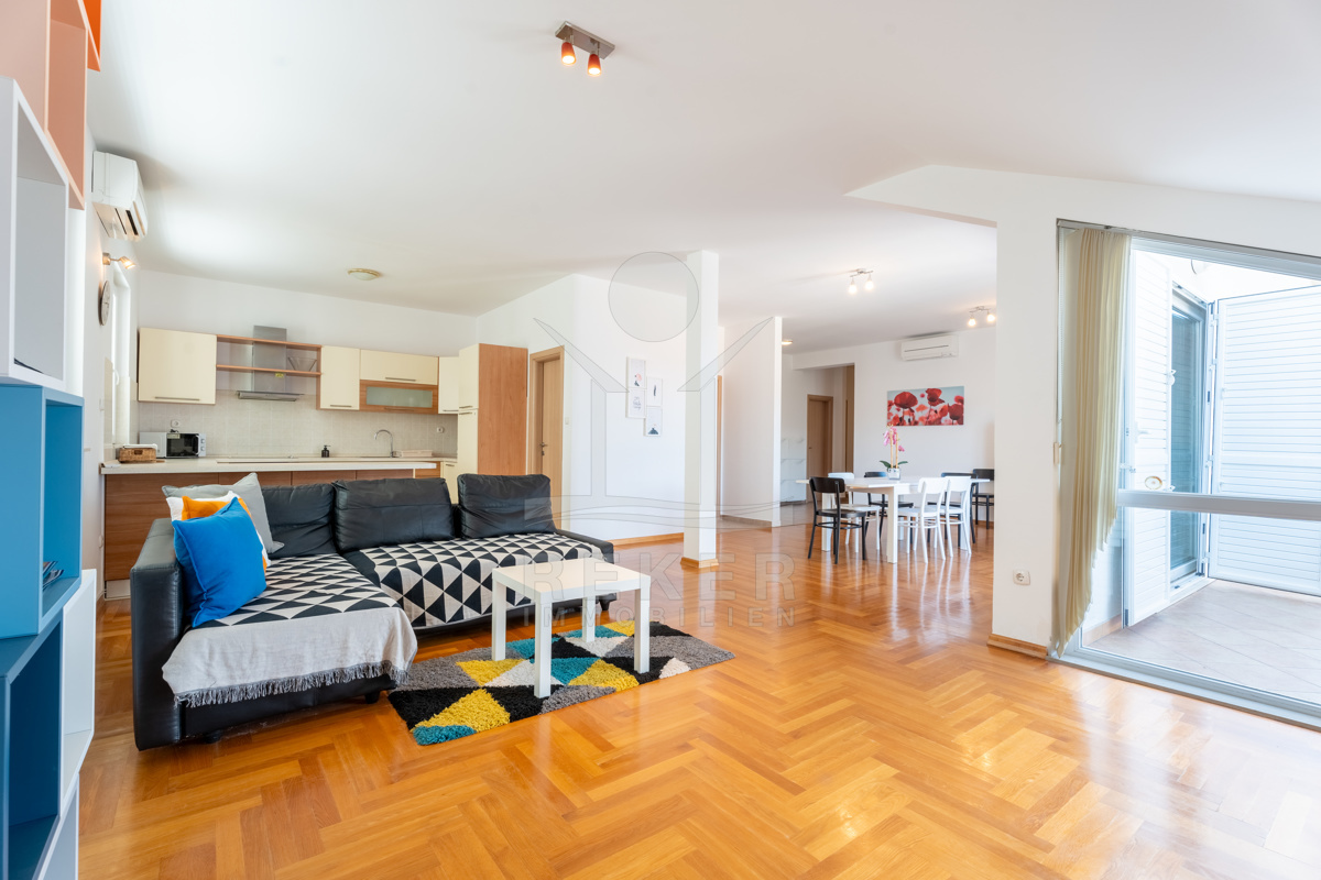Die exklusive Immobile erstreckt sich über eine Wohnfläche von 137 m² und befindet sich im 3. Stock eines Wohngebäudes. Das Apartment beeindruckt mit einem offenen Grundriss, der Wohn-, Ess- und Küchenbereich verbindet und somit einen zentralen und einladenden Treffpunkt für Zusammenkünfte schafft. Mit 3 Schlafzimmern, 2 Badezimmern und 2 Abstellräumen bietet die Wohnung sowohl Komfort als auch ausreichend Stauraum für die Bewohner.